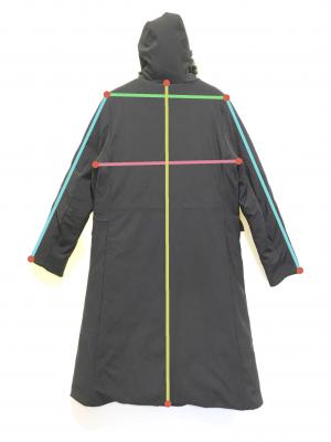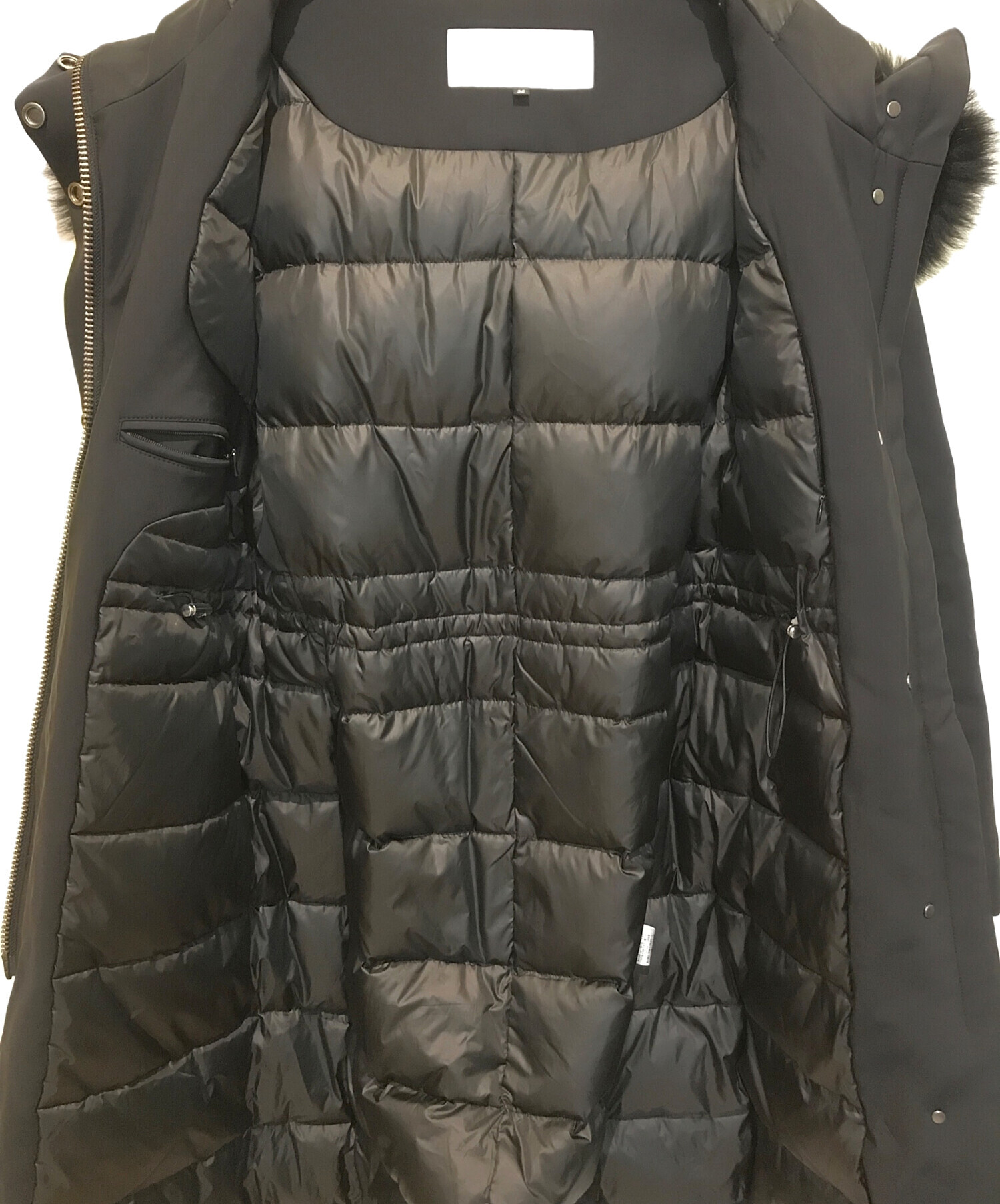 | 素材 | 表地 基布 ポリエステル 100% 表側 ナイロン 77% ポリウレタン 23% 中綿 ダウン 80% フェザー 20% 衿ファー ブルーフォックス 裏地 ポリエステル 100% |