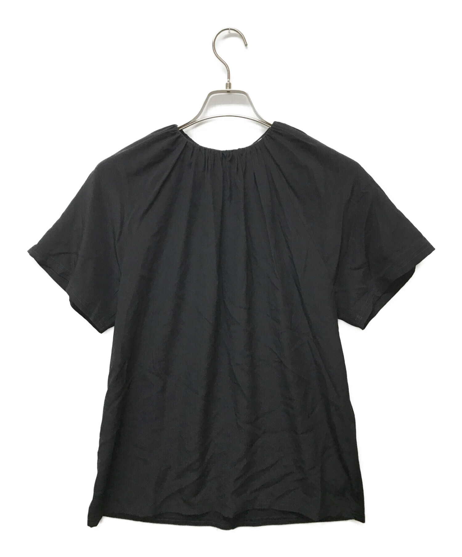 | アイテム名 | ギャザーネックシルク半袖ブラウス |