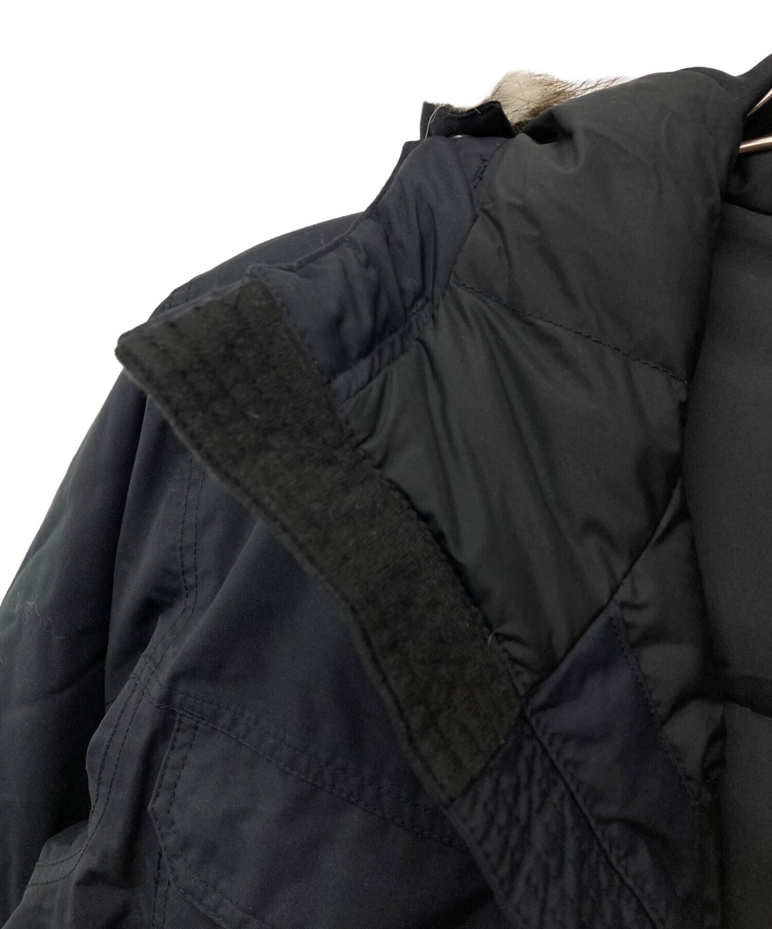 | 素材 | 表地: ナイロン 100% 中わた: ダウン 75% その他の羽毛 25% 裏地: ポリエステル 100% 袖/細部: ナイロン 95% ポリウレタン 5% ファー: アクリル 70% ポリエステル 15% アクリル系 15% |