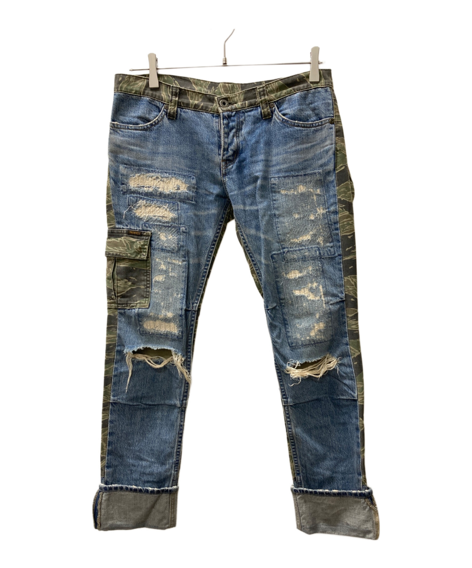 | スタッフコメント | デニム生地と迷彩柄のコットン生地がドッキングされたスキニーデニムパンツです。バックポケットはサイドジップがついているなど細かな遊び心を感じます。生地感は分厚すぎないので、オールシーズン着用が可能となっております。 |