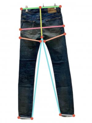 | スタッフコメント | フロントのペイントデザインが目を惹くスキニーデニムパンツです。ポケットのスタッズデザインも特徴的なデニムとなっております。生地感は分厚すぎないので、オールシーズン着用が可能となっております。 |