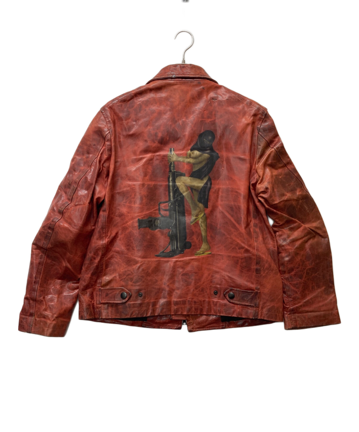 • Y's(ワイズ)Y's (ワイズ) JUSTIN DAVIS (ジャスティンデイビス) パラフィン加工 バックプリントレザージャケット レッド サイズ:3の古着・服飾アイテム スレ・ヨゴレ有