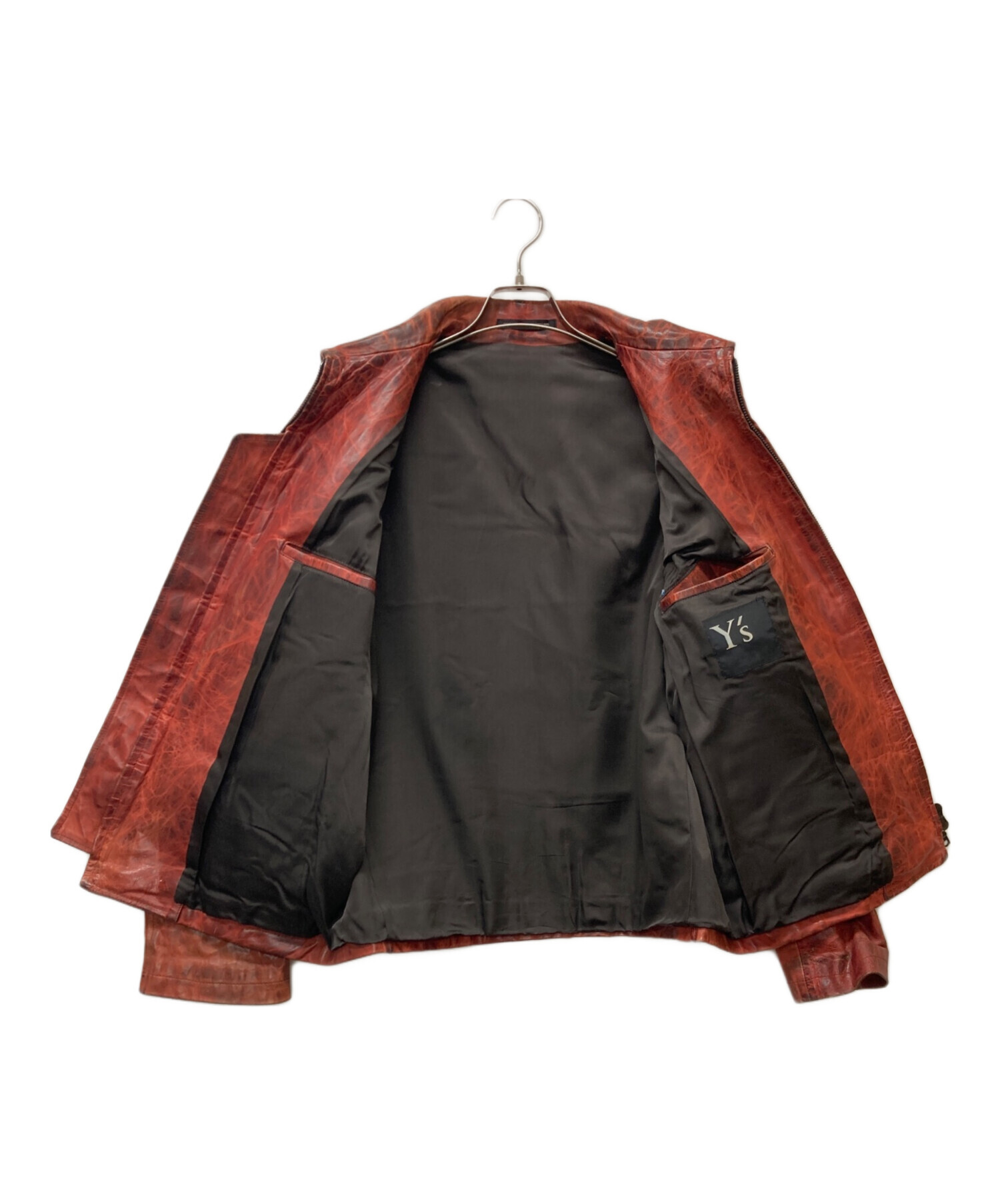 • Y's(ワイズ)Y's (ワイズ) JUSTIN DAVIS (ジャスティンデイビス) パラフィン加工 バックプリントレザージャケット レッド サイズ:3の古着・服飾アイテム ダメージ有