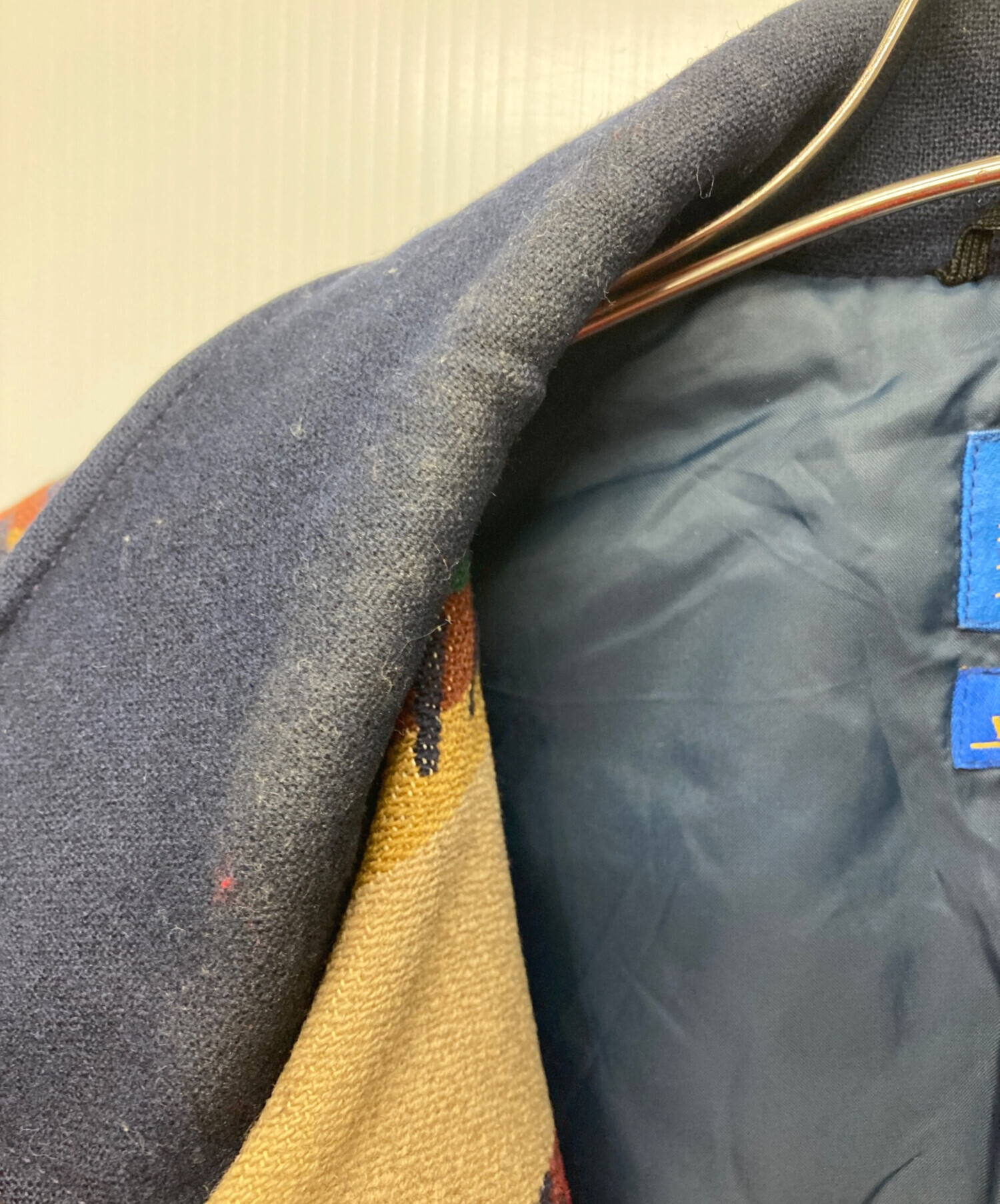 • PENDLETON(ペンドルトン)PENDLETON (ペンドルトン) Thinsulate 中綿入り ウール ブランケット ジャケット ネイビー サイズ:Lの古着・服飾アイテム ヨゴレ有