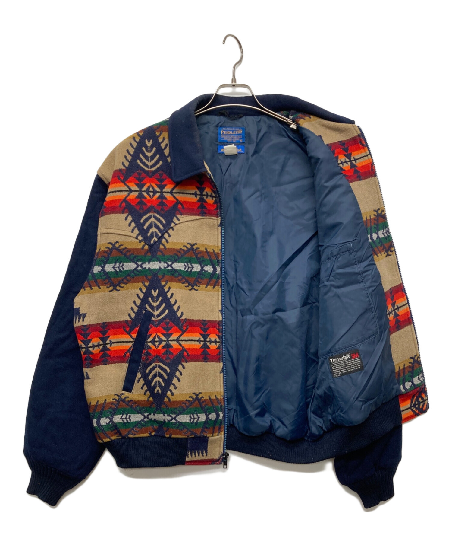 • PENDLETON(ペンドルトン)PENDLETON (ペンドルトン) Thinsulate 中綿入り ウール ブランケット ジャケット ネイビー サイズ:Lの古着・服飾アイテム 袖口汚れ有