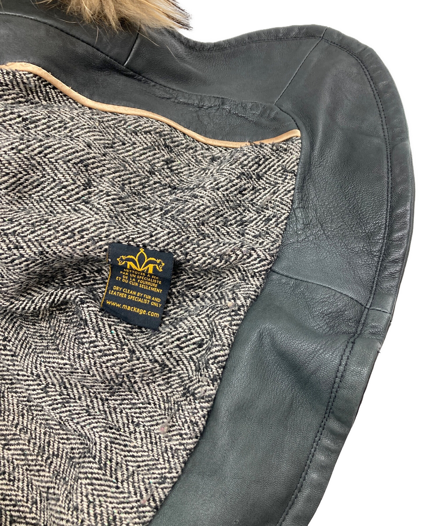 | 素材 | 表地: レザー 身頃裏地: アクリル 70% ウール 30% 袖/裏地: ポリエステル 100% 毛皮: ラクーンファー |