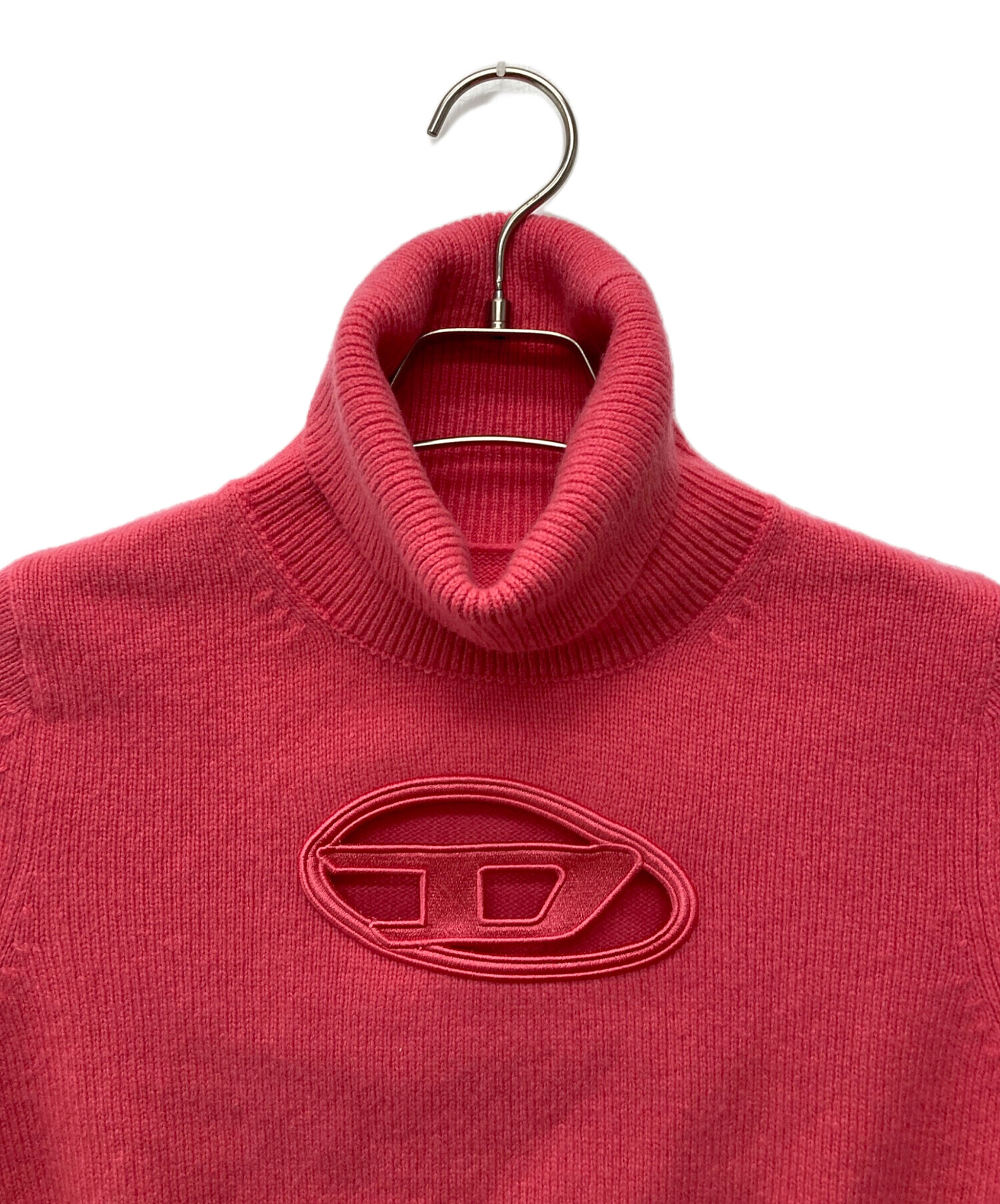 • DIESEL(ディーゼル)DIESEL (ディーゼル) Dロゴデザイン半袖ニット/A06713 ピンク サイズ:3の古着・服飾アイテム 若干毛羽立ち有
