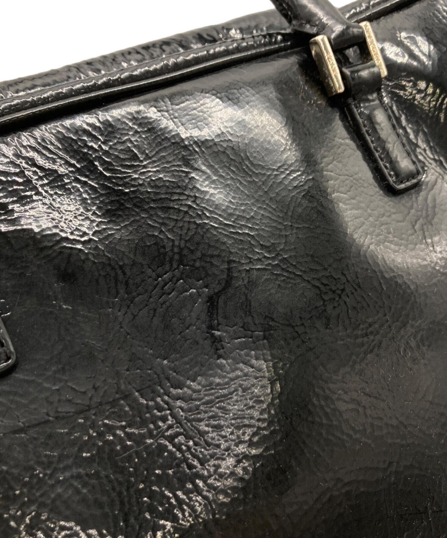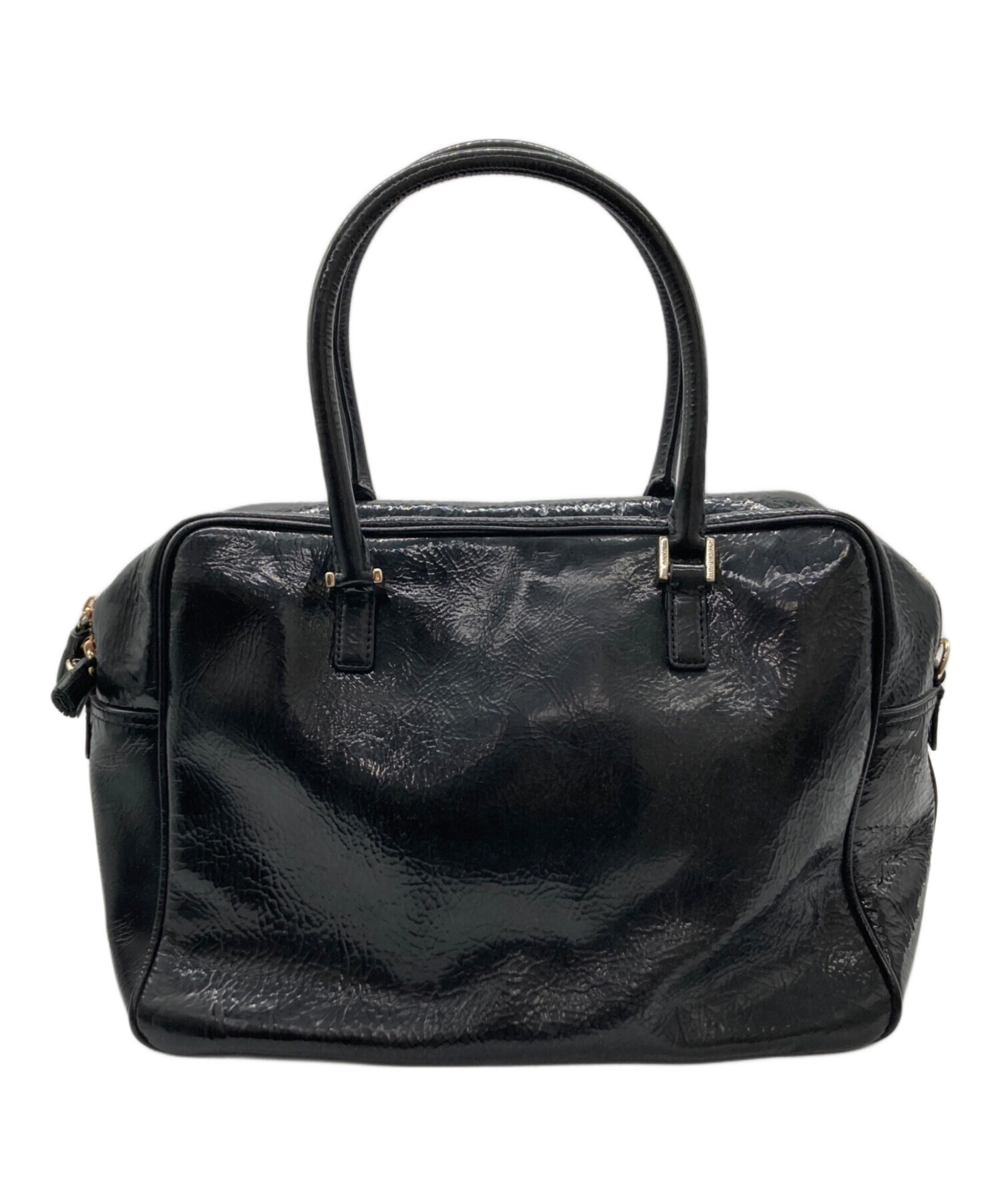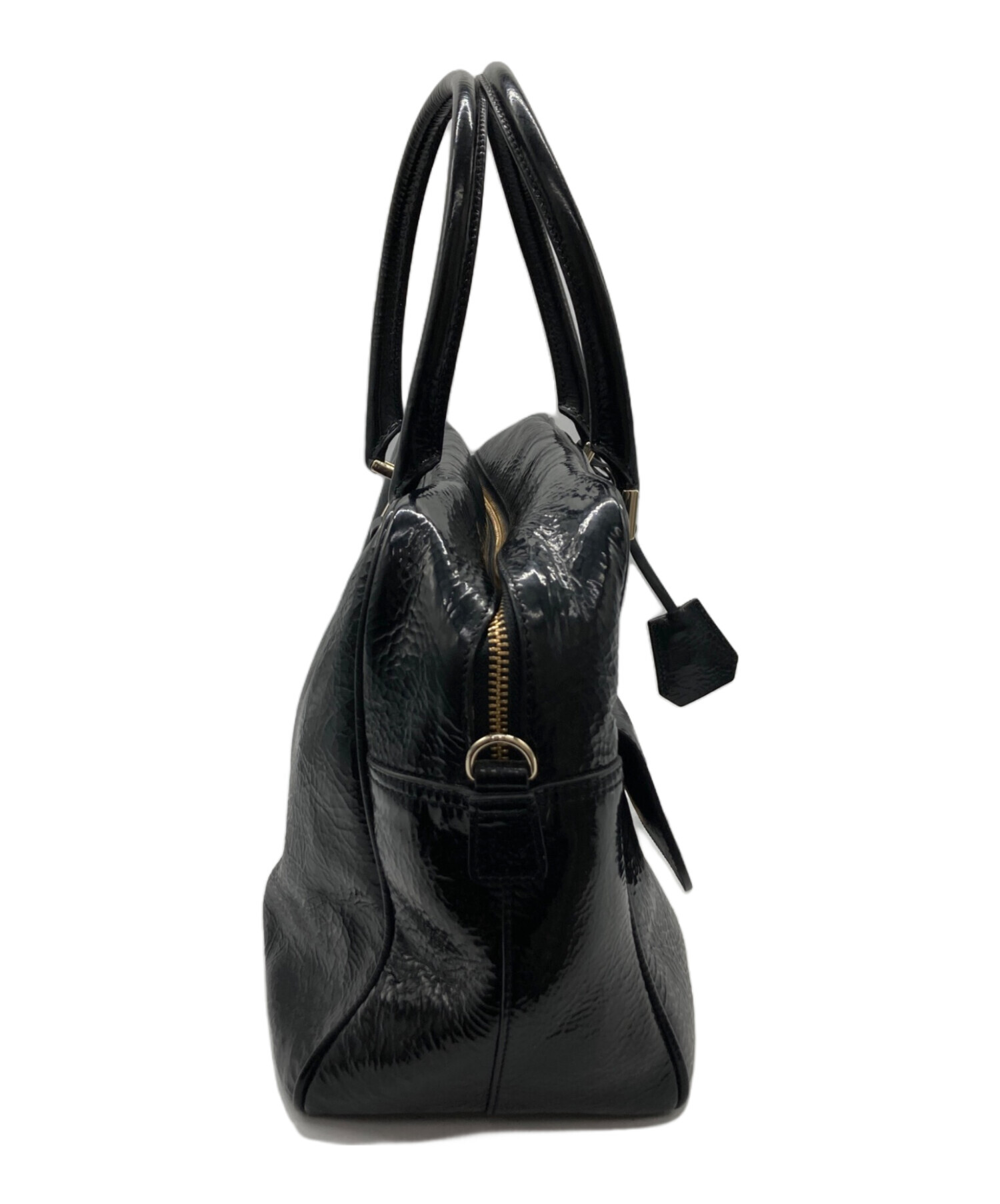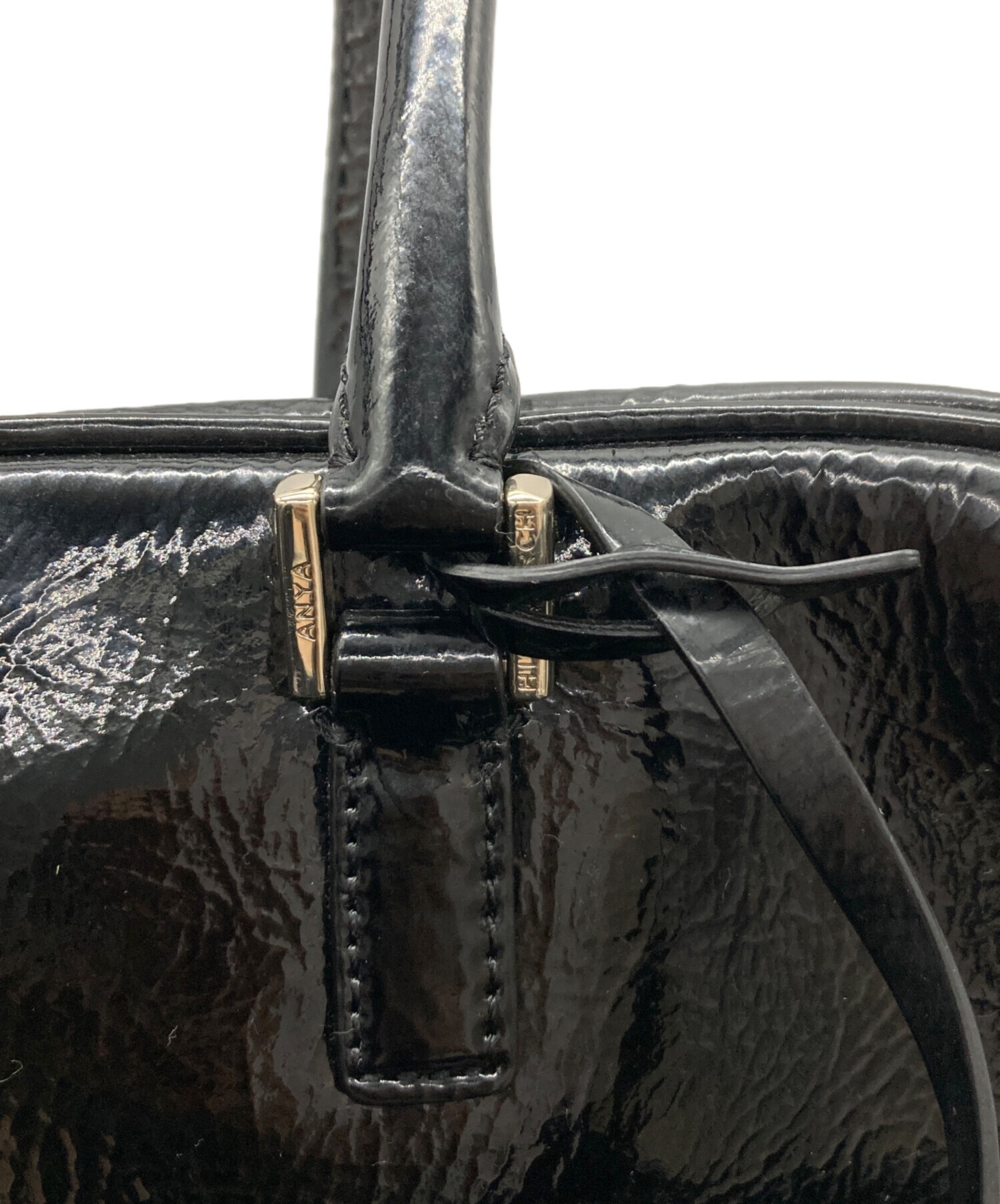 • ANYA HINDMARCH(アニヤ・ハインドマーチ)ANYA HINDMARCH (アニヤ・ハインドマーチ) エナメルスモールカーカーハンドバッグ ブラックの古着・服飾アイテム スレ有、ヨゴレ有