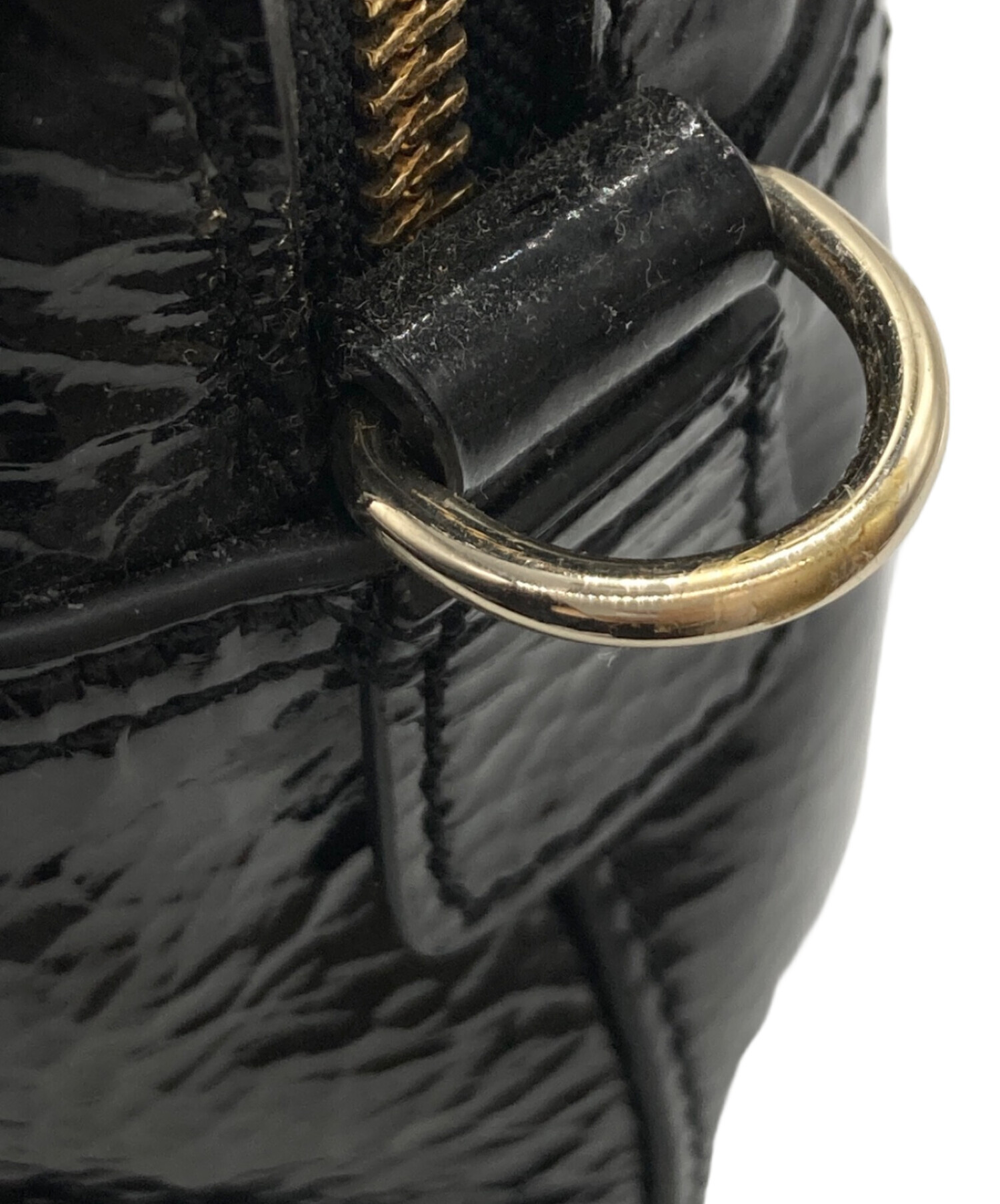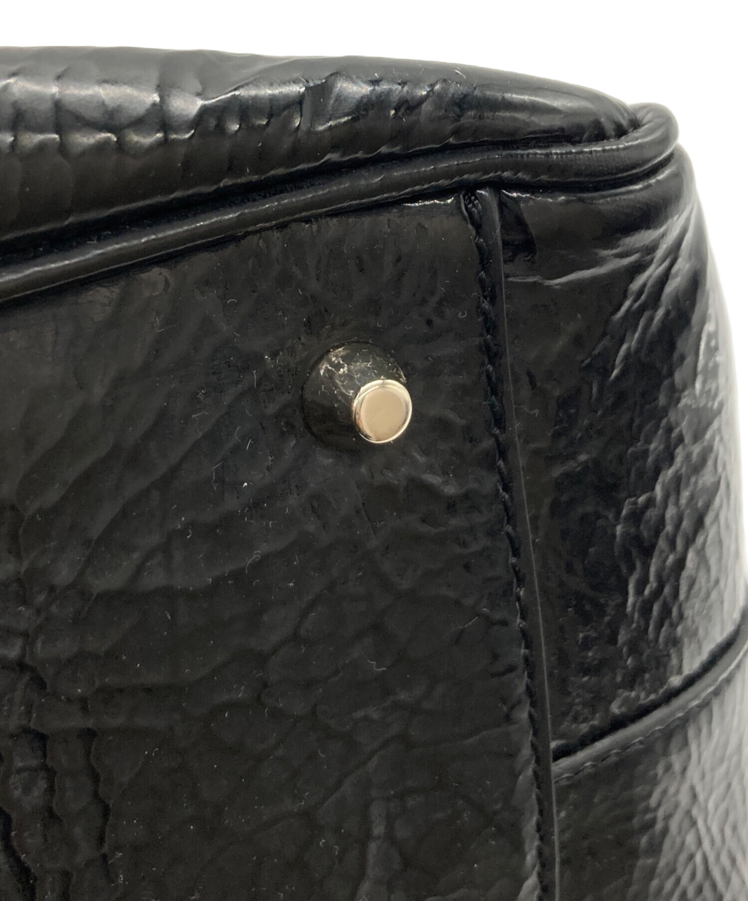 • ANYA HINDMARCH(アニヤ・ハインドマーチ)ANYA HINDMARCH (アニヤ・ハインドマーチ) エナメルスモールカーカーハンドバッグ ブラックの古着・服飾アイテム ヨゴレ有