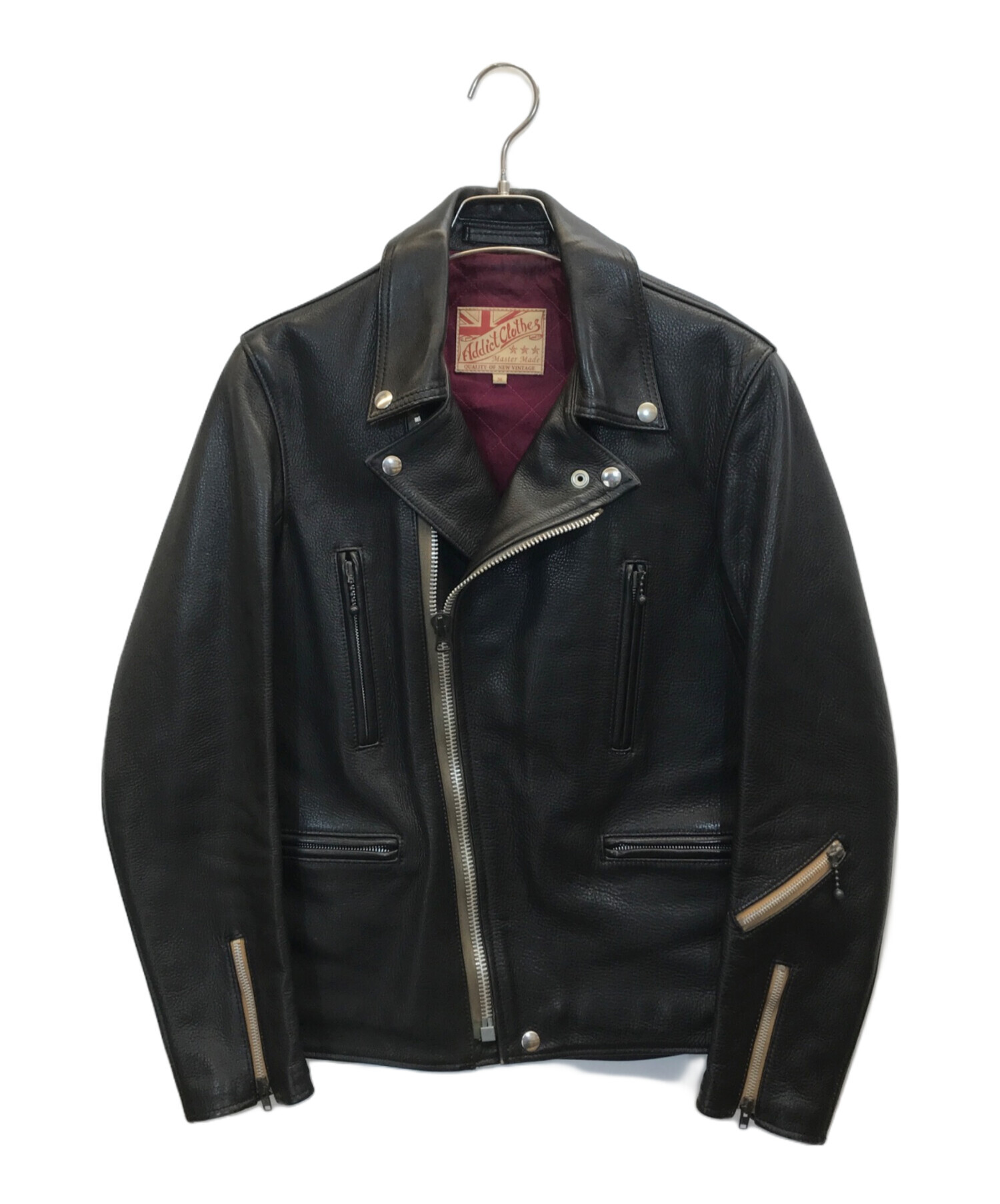 • ADDICT CLOTHES(アディクト クローズ)ADDICT CLOTHES (アディクト クローズ) ダブルライダースジャケット ブラック サイズ:36の古着・服飾アイテム ダメージ有