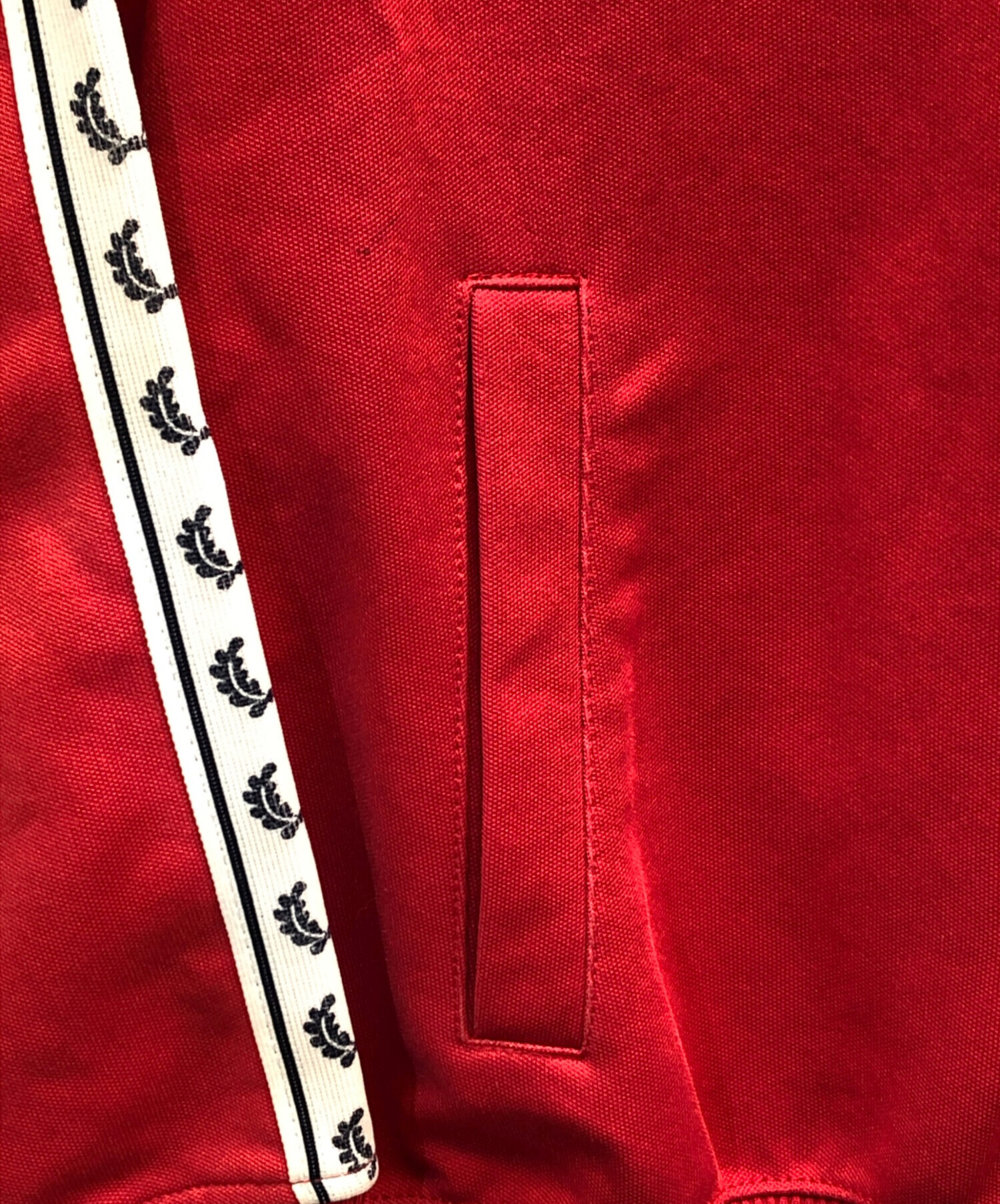 • FRED PERRY(フレッドペリー)FRED PERRY (フレッドペリー) トラックジャケット レッド サイズ:Mの古着・服飾アイテム 右袖 ヨゴレ有