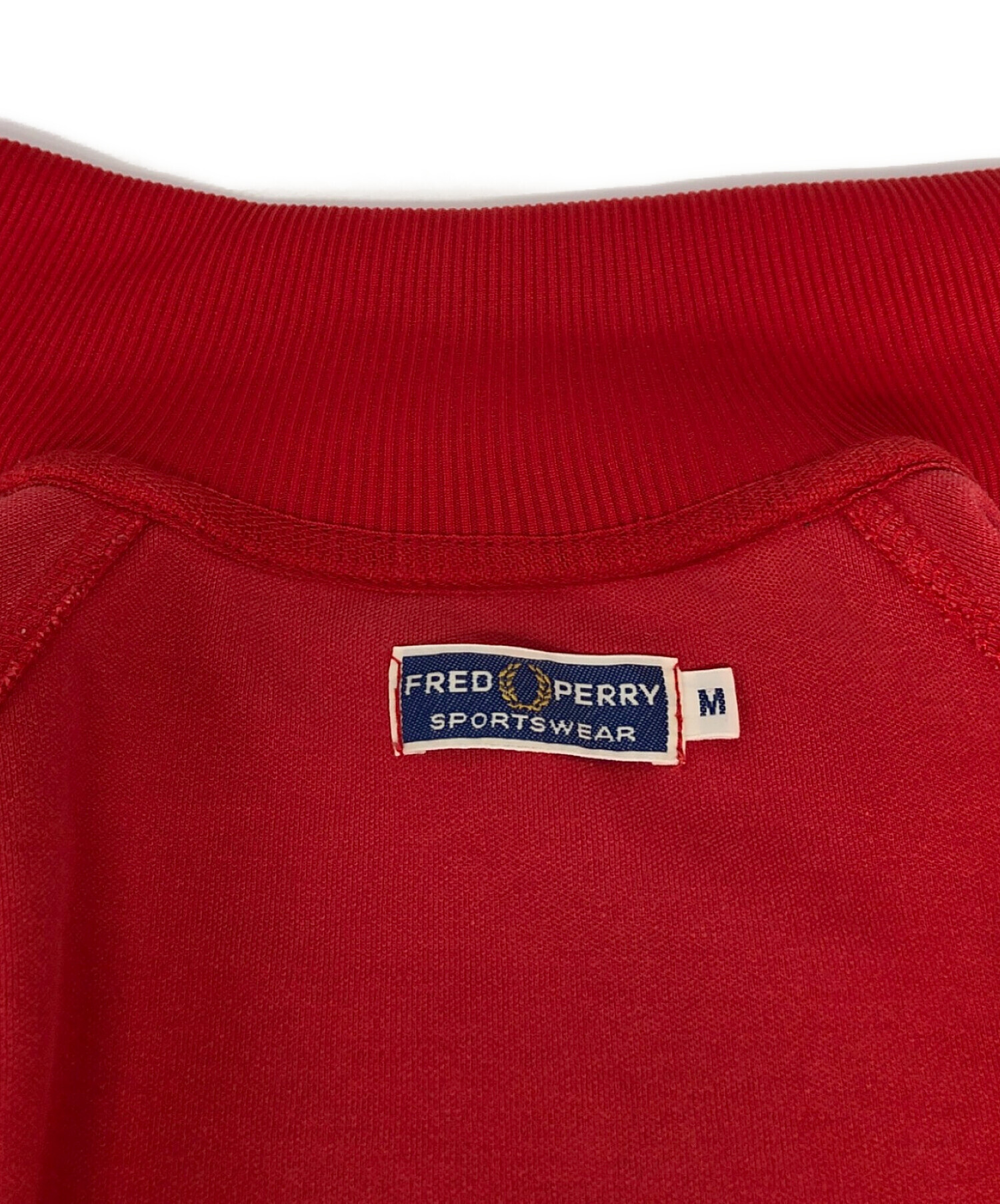 • FRED PERRY(フレッドペリー)FRED PERRY (フレッドペリー) トラックジャケット レッド サイズ:Mの古着・服飾アイテム 袖リブ裏 スレ有