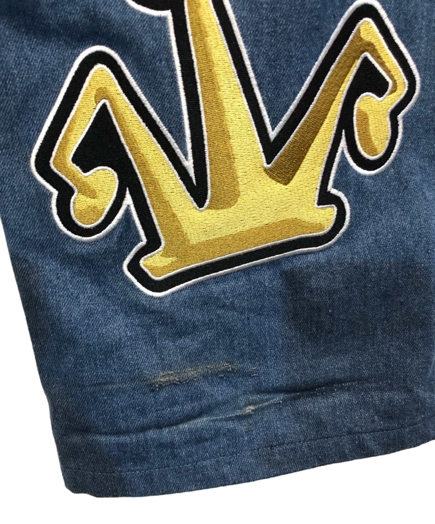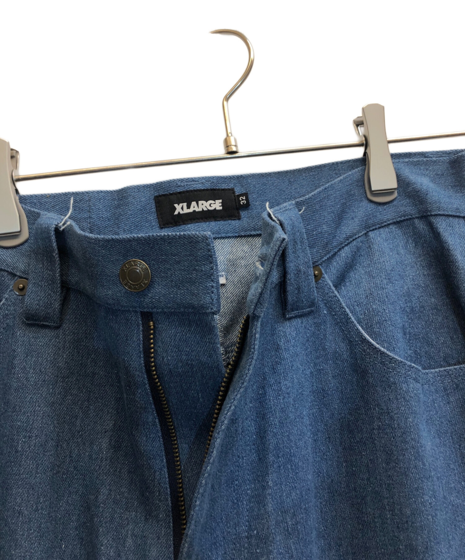 • X-LARGE(エクストララージ)X-LARGE (エクストララージ) CROWN PAINTER PANTS インディゴ サイズ:32の古着・服飾アイテム 裾後ろ ダメージ有