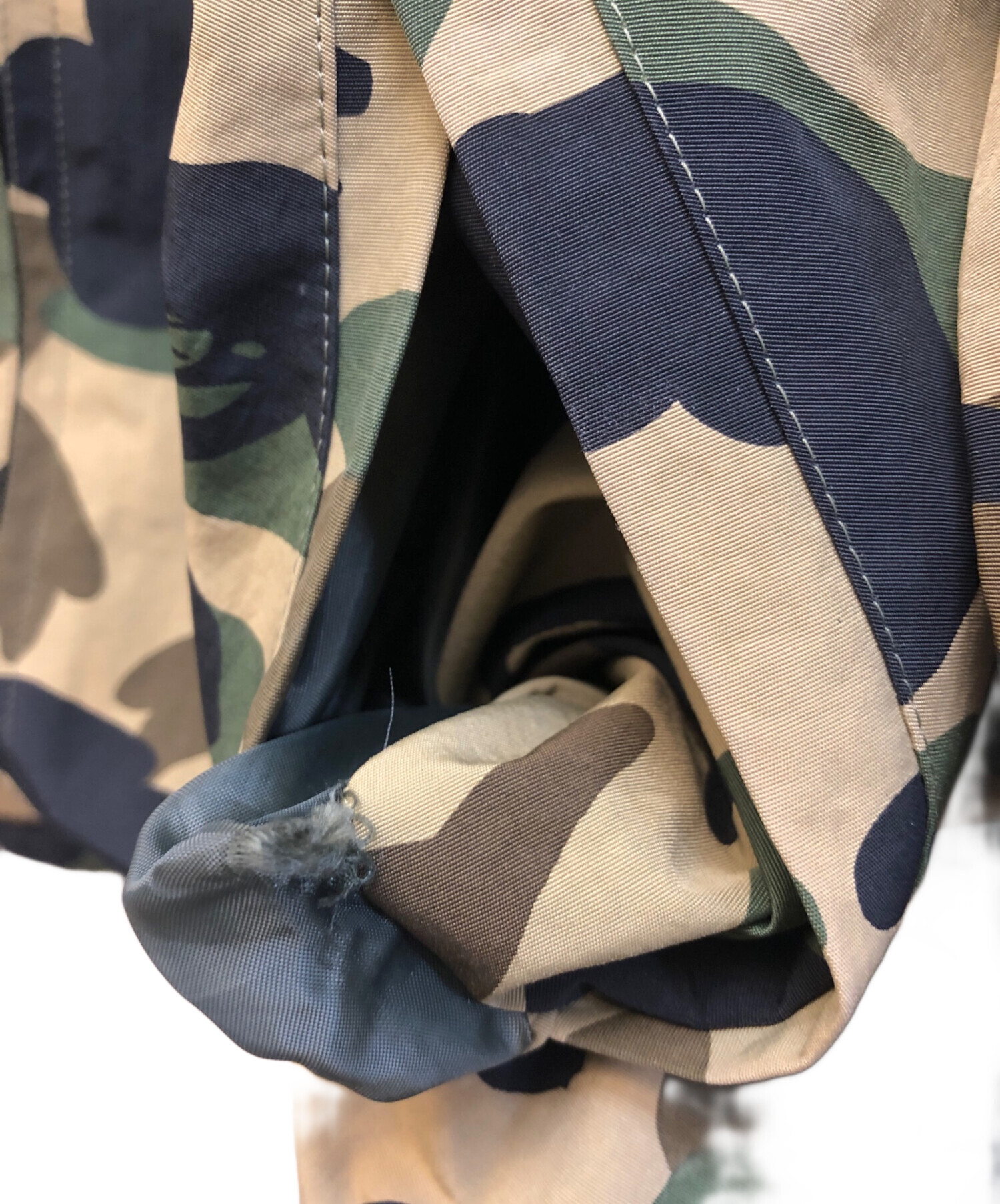 | スタッフコメント | 旧タグのカモ柄ナイロンジャケットです。袖の取り外しが可能で2WAYでの着用が可能です。 |