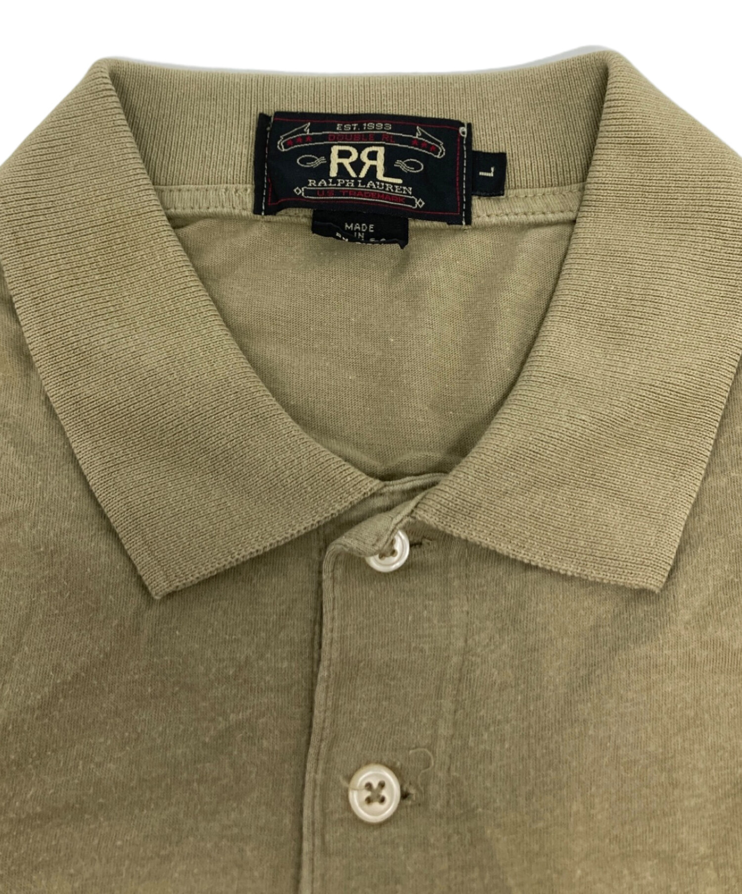 • RRL(ダブルアールエル)RRL (ダブルアールエル) ポロシャツ オリーブ サイズ:Lの古着・服飾アイテム ヨゴレ・毛羽立ち有
