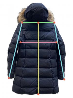 | 素材 | 表地: 綿 74% ナイロン 26% 裏地: ナイロン 100% 詰物: ダウン 90% フェザー 10% 毛皮部分: ラクーン |