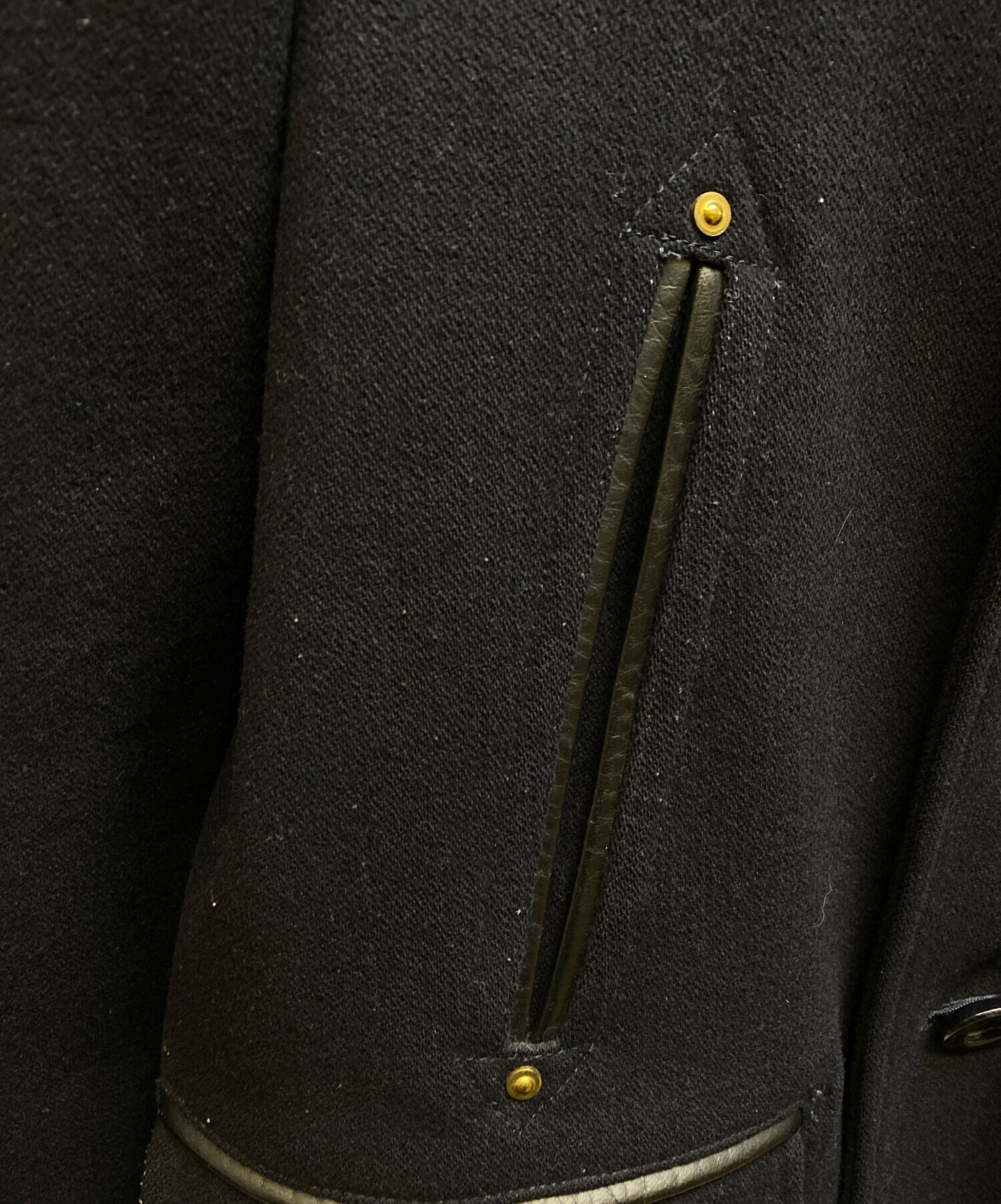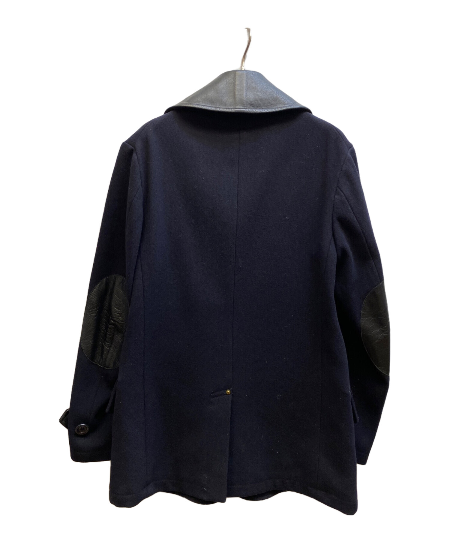• anachronorm(アナクロノーム)anachronorm (アナクロノーム) レザー切替ウールコート ネイビー サイズ:01の古着・服飾アイテム 襟ヨゴレ有