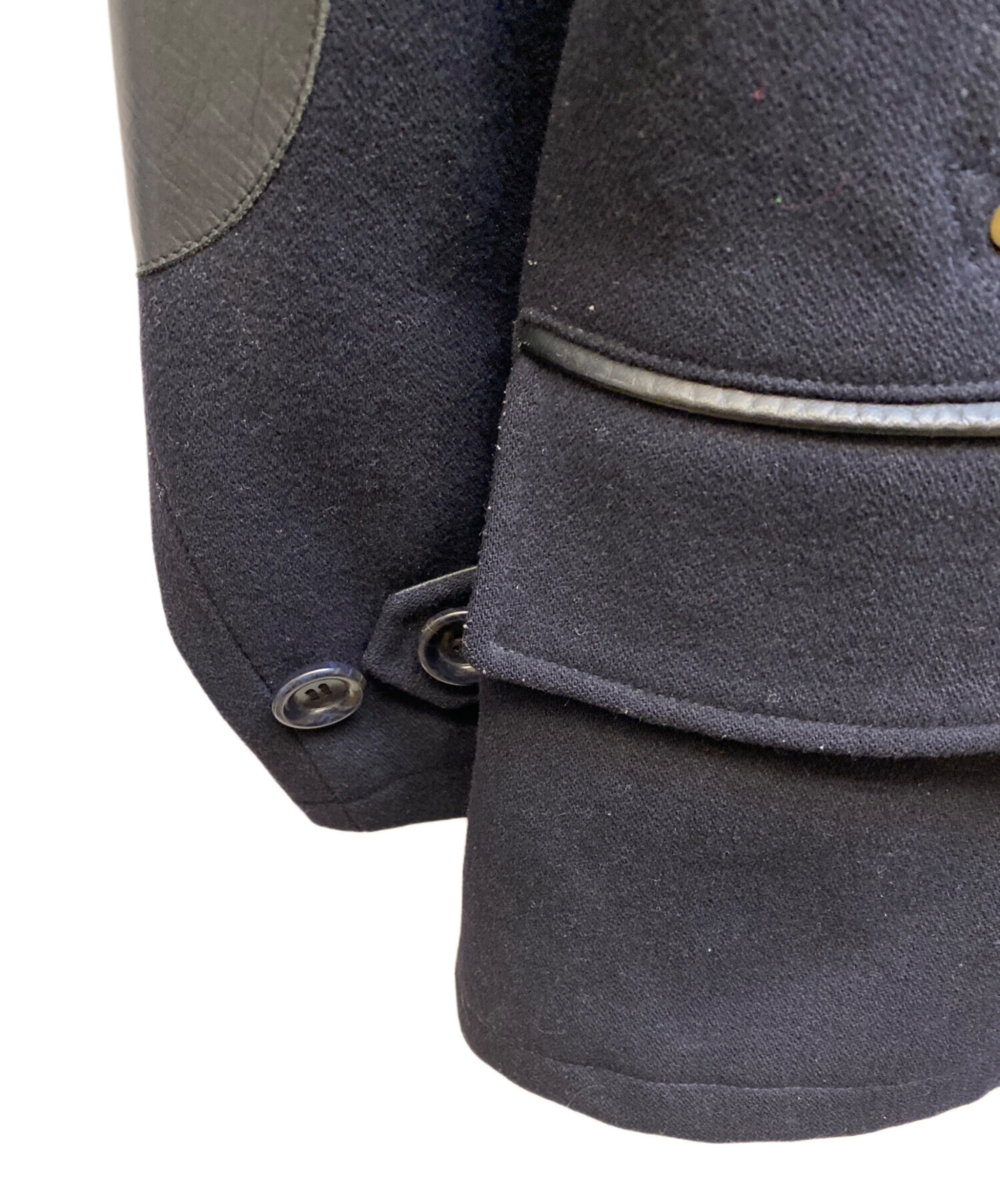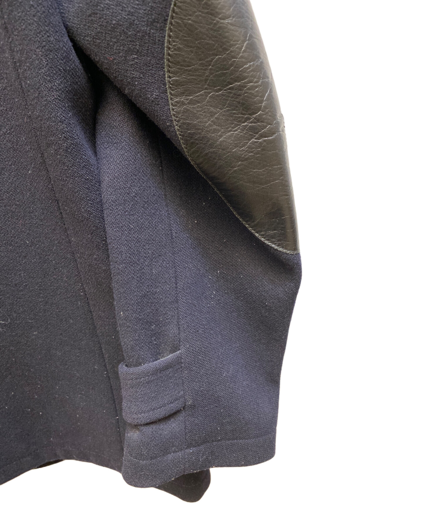 • anachronorm(アナクロノーム)anachronorm (アナクロノーム) レザー切替ウールコート ネイビー サイズ:01の古着・服飾アイテム 袖ヨゴレ・毛玉有