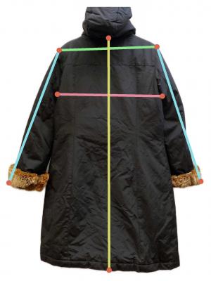 | 素材 | 表地: 綿 60% ナイロン 40% 裏地: ポリエステル 100% 中綿: ダウン 70% 30% 付属部分: ラビット |