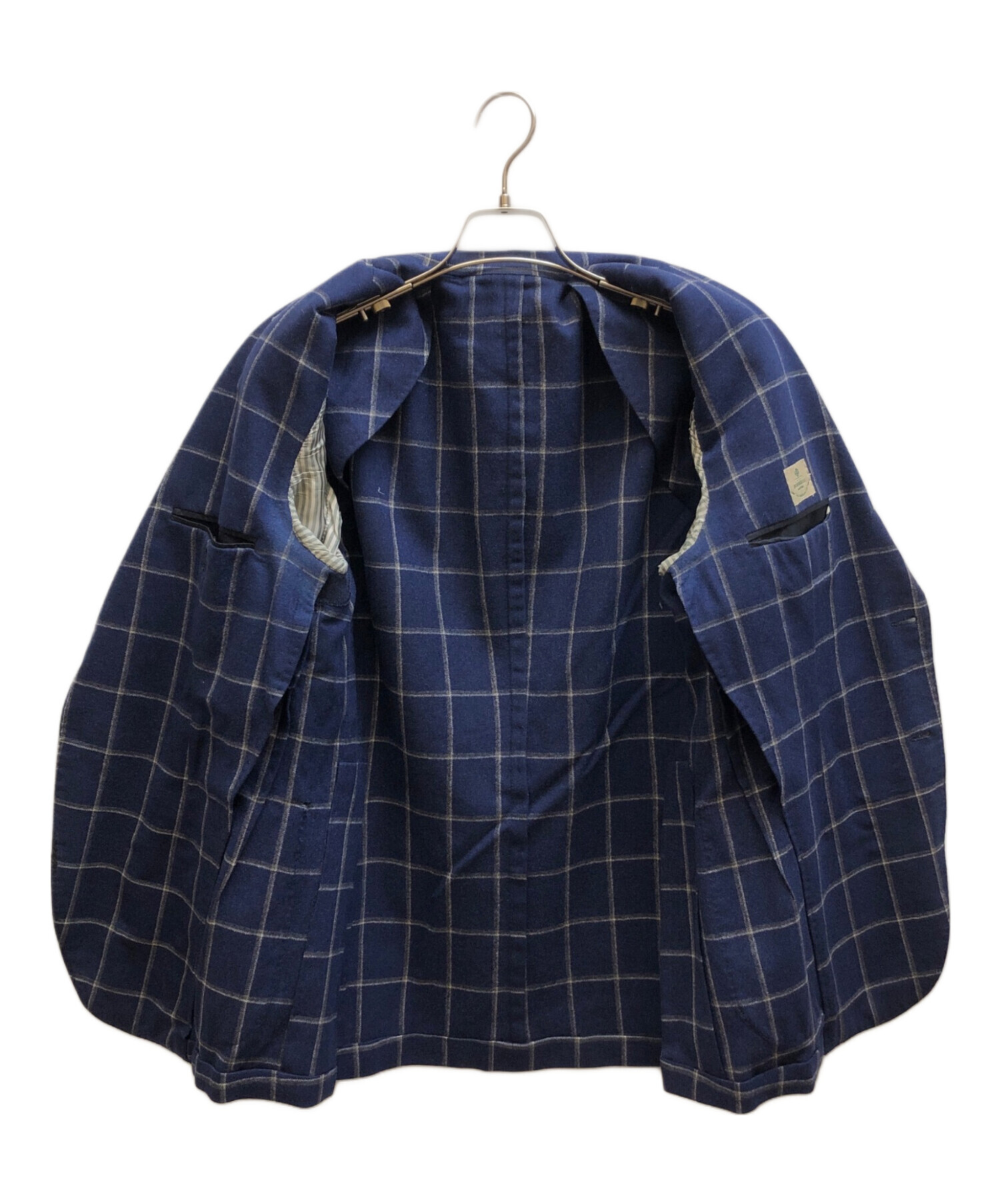 • BORRELLI(ボレッリ)BORRELLI (ボレッリ) チェックテーラードジャケット ブルー サイズ:48の古着・服飾アイテム ダメージ有