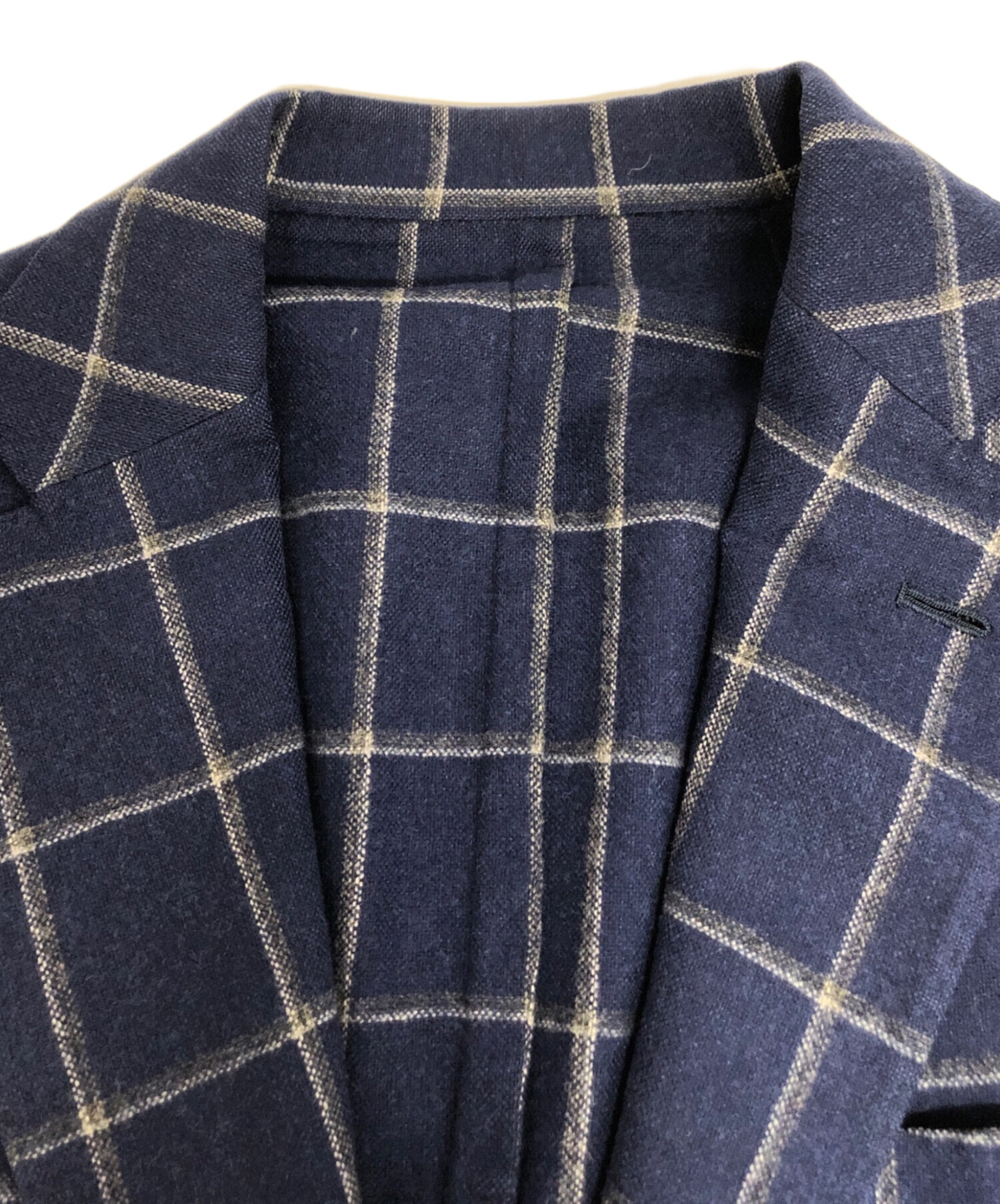 • BORRELLI(ボレッリ)BORRELLI (ボレッリ) チェックテーラードジャケット ブルー サイズ:48の古着・服飾アイテム 脇下 毛羽立ち有