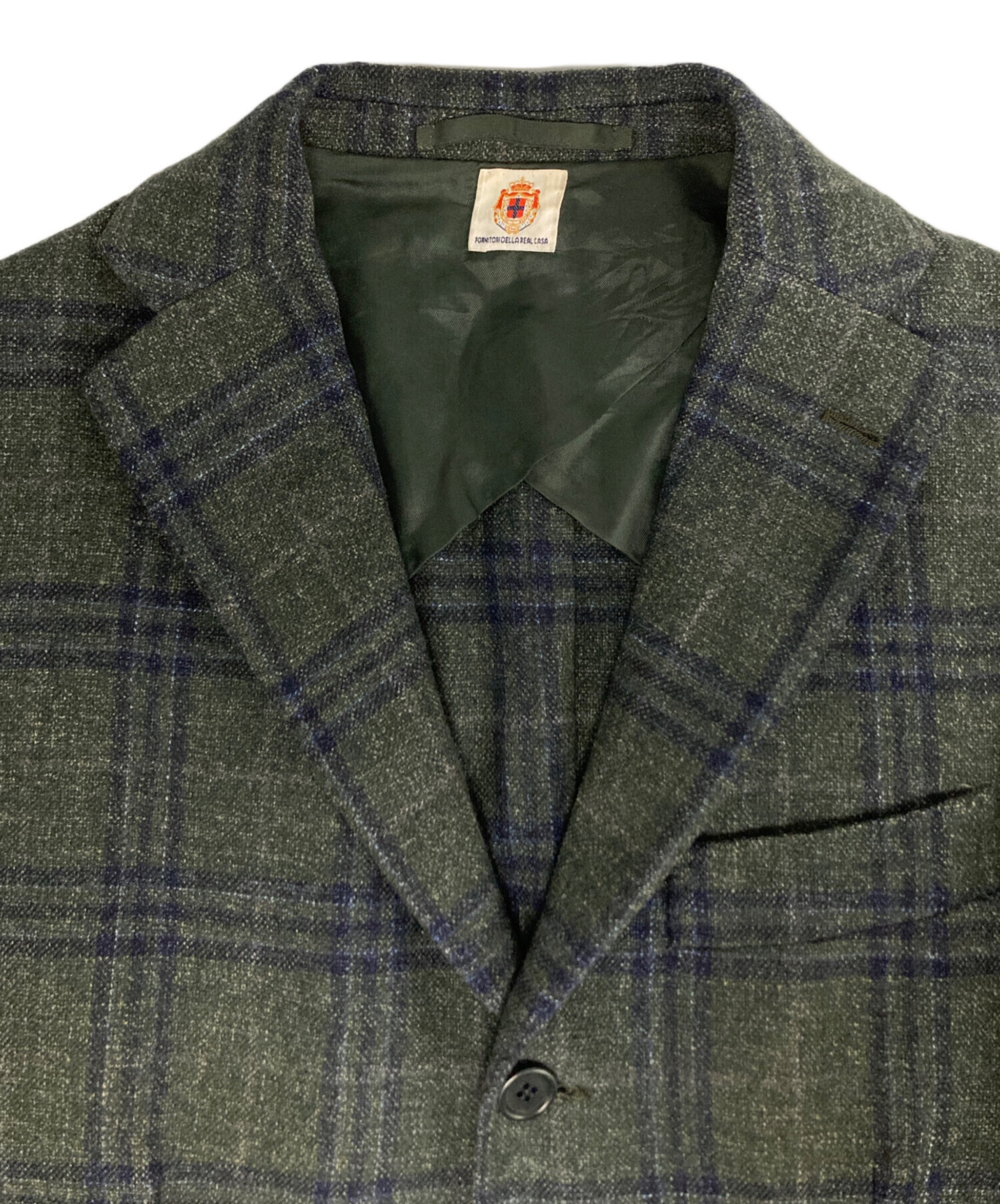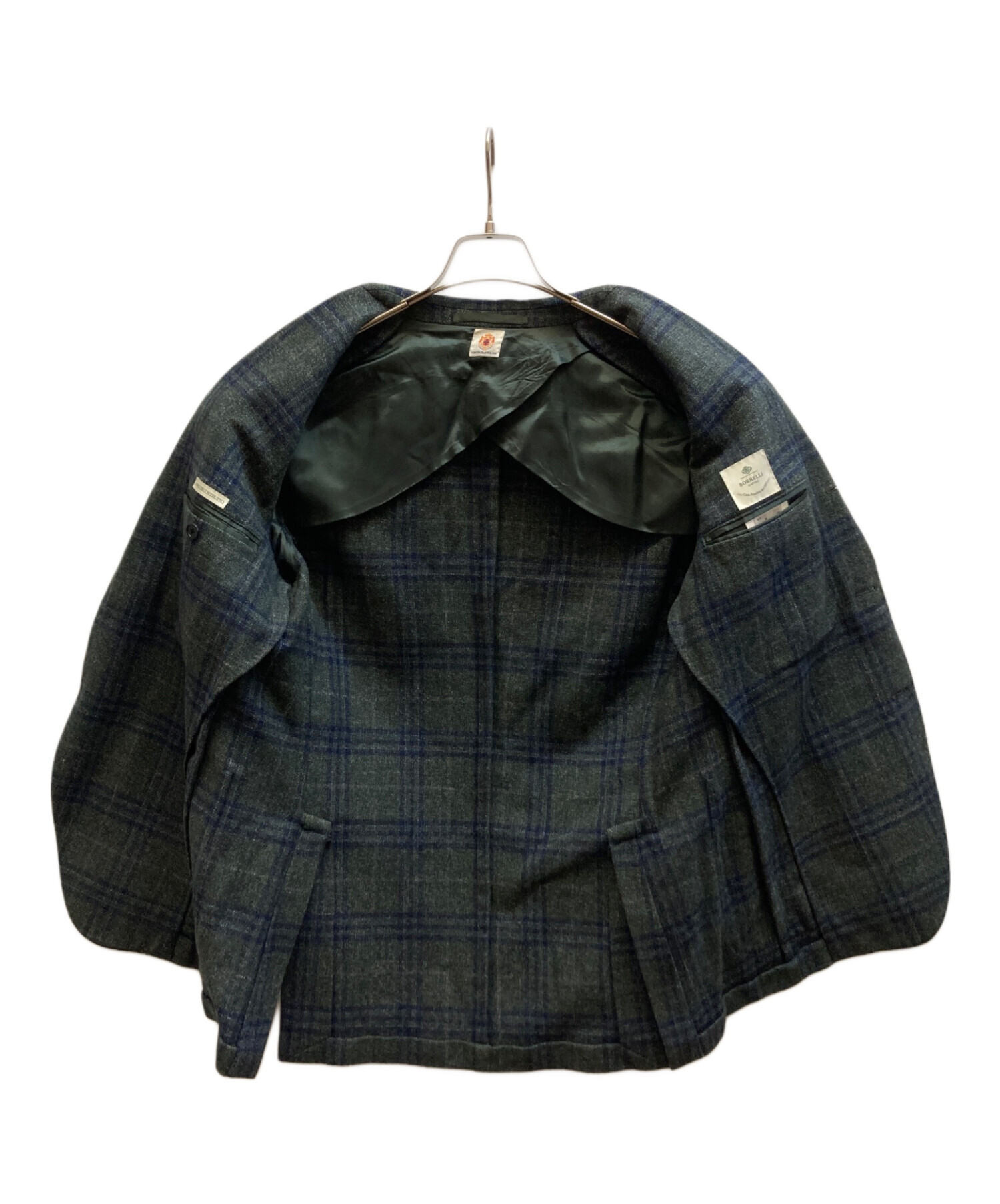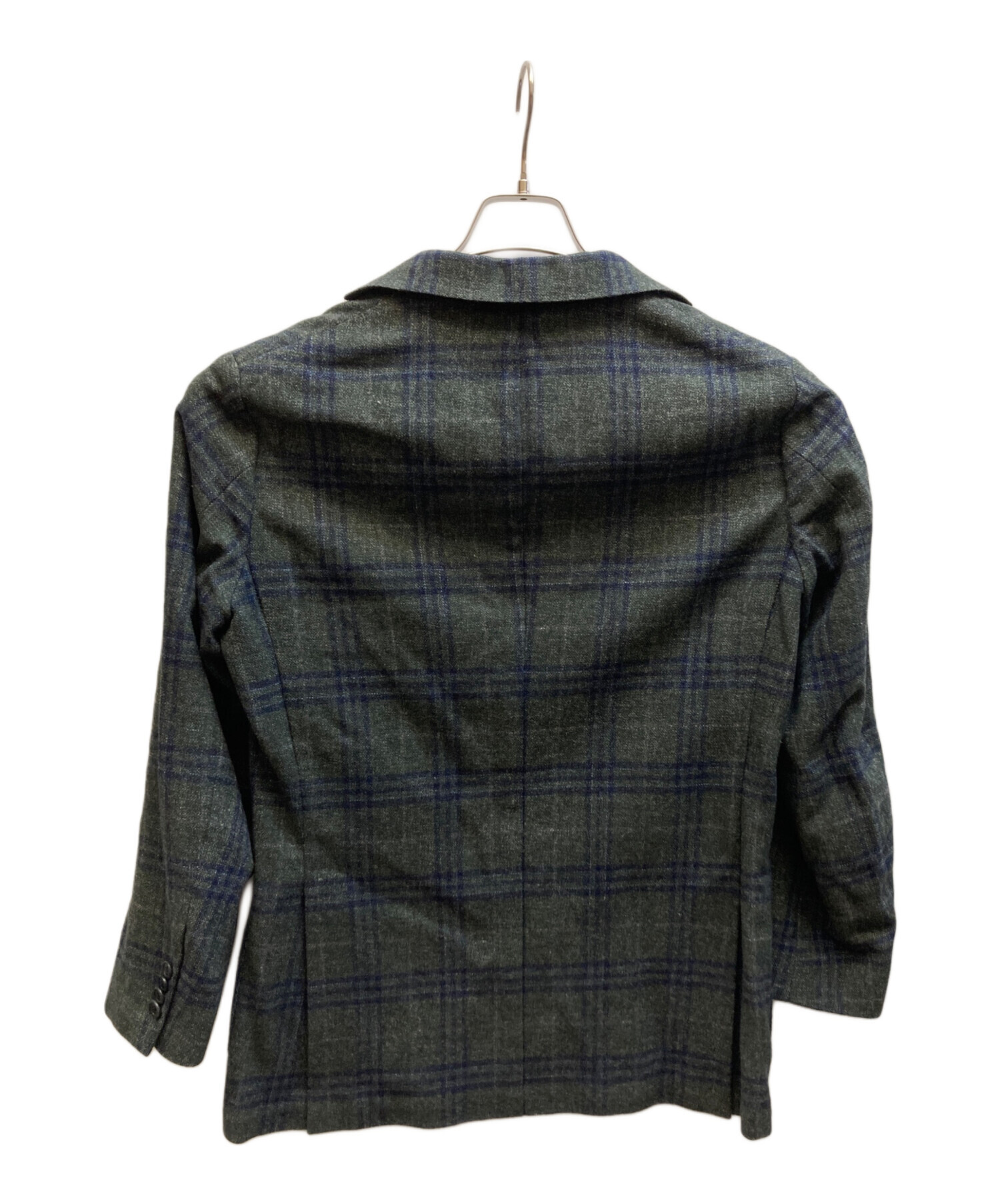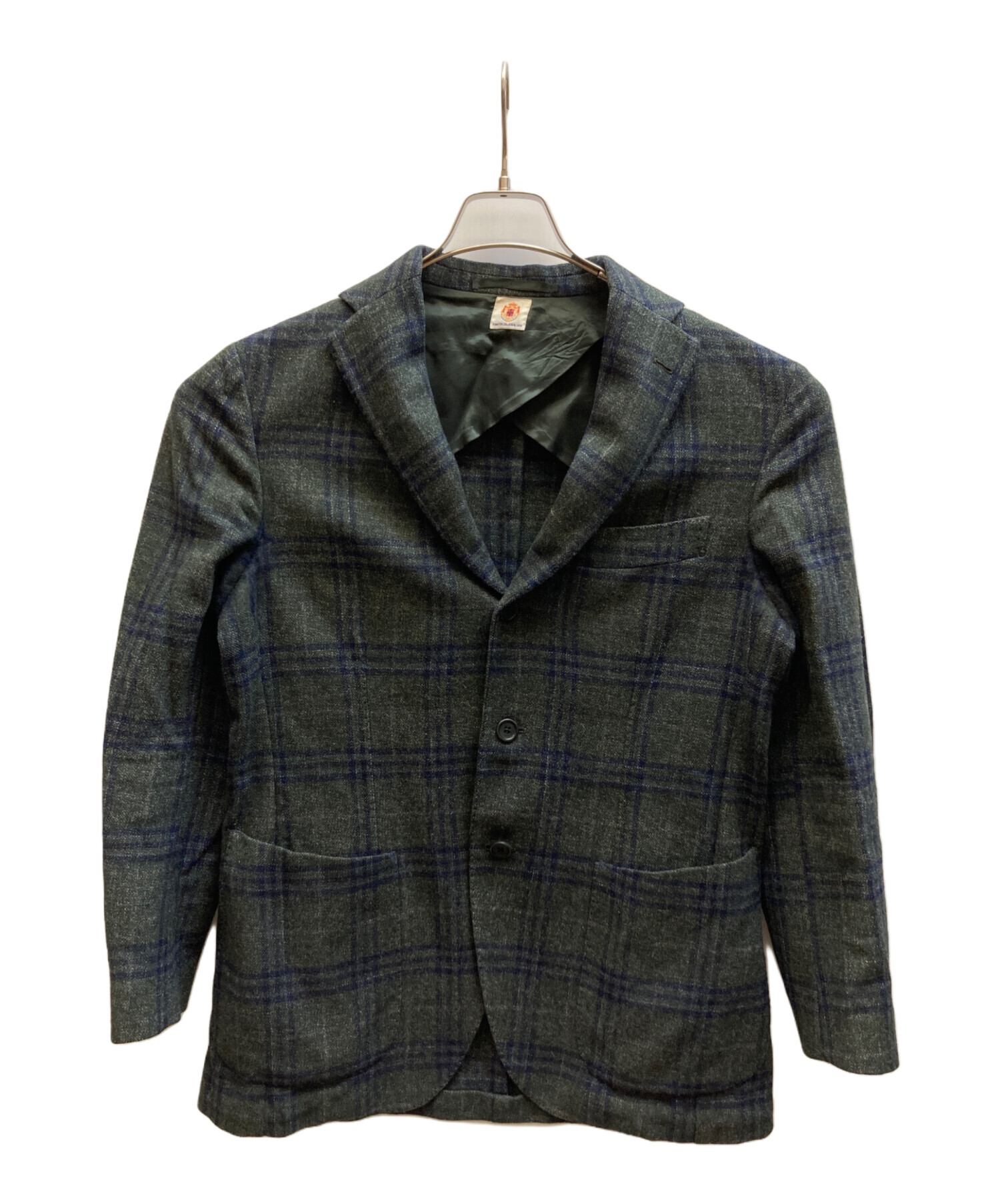• BORRELLI(ボレッリ)BORRELLI (ボレッリ) ウールチェックテーラードジャケット グリーン サイズ:48の古着・服飾アイテム 右内ポケットボタン ホツレ有