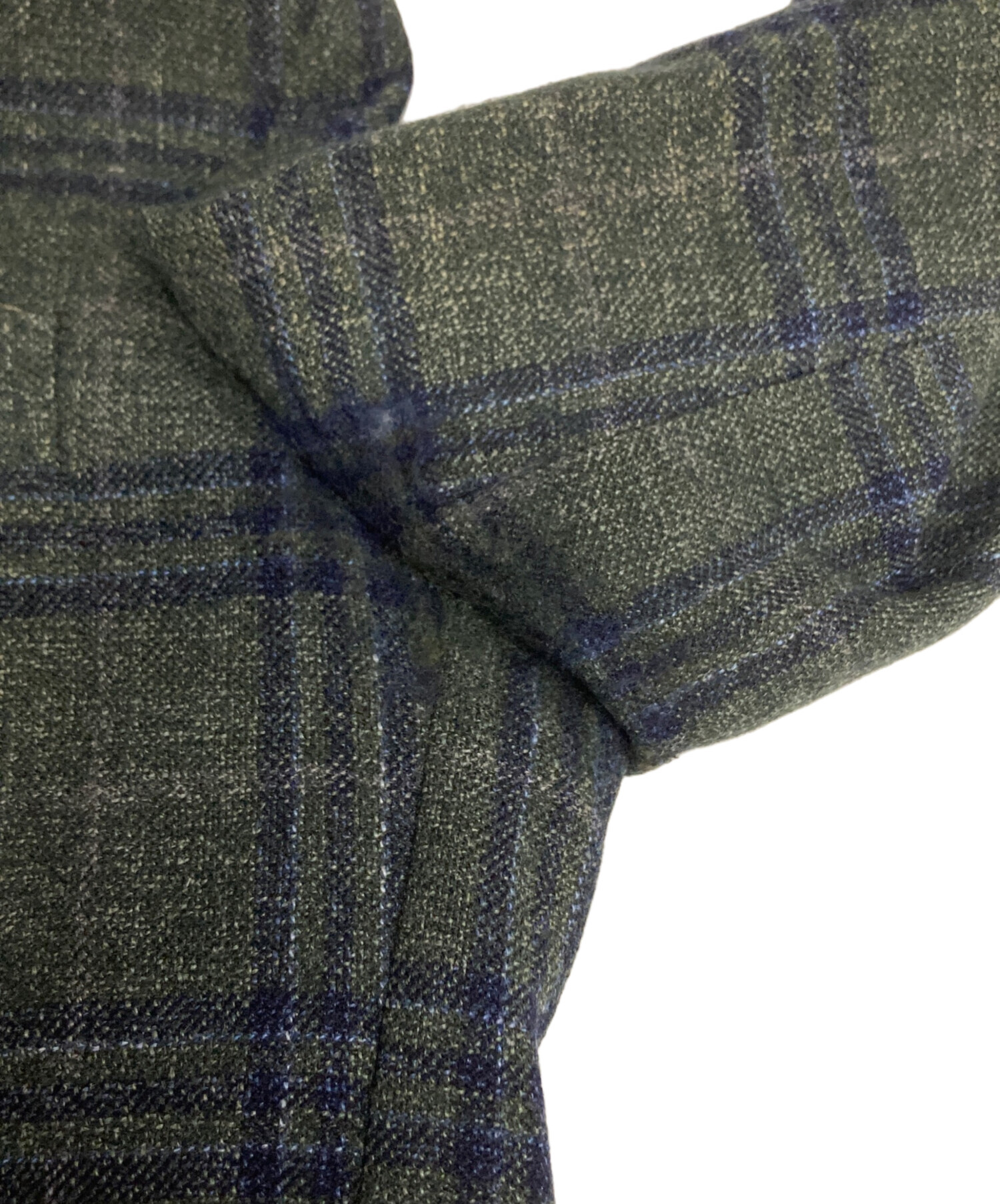 • BORRELLI(ボレッリ)BORRELLI (ボレッリ) ウールチェックテーラードジャケット グリーン サイズ:48の古着・服飾アイテム 脇 毛羽立ち有