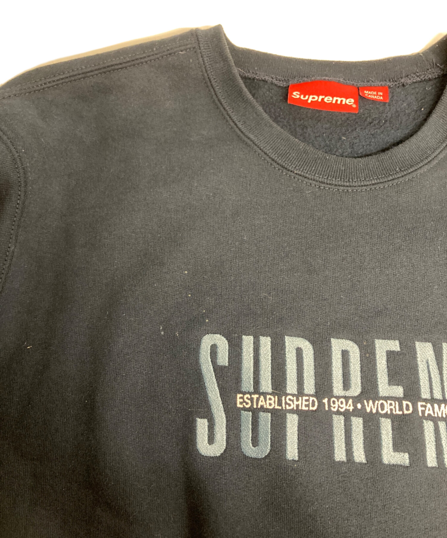 • SUPREME(シュプリーム)SUPREME (シュプリーム) World Famous Crewneck ネイビー サイズ:Lの古着・服飾アイテム ヨゴレ有