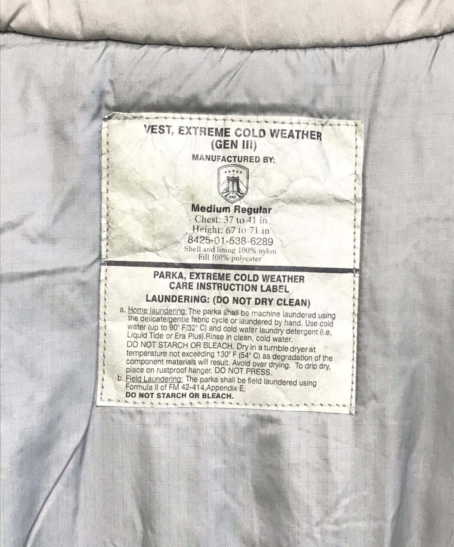 | アイテム名 | PCU GEN III EXTREME COLD WEATHER VEST |