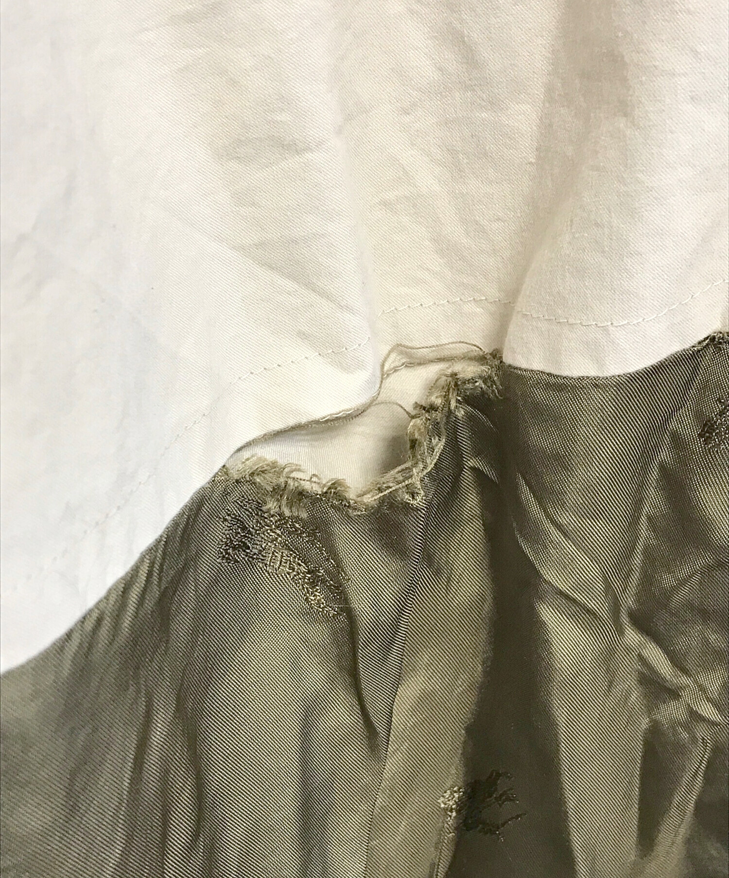 目立つシミや汚れ、におい等がある場合は商品画像や説明文にて極力表記させていただいておりますが、中古品という商品の特性上、全ての瑕疵や不備、洋服直し箇所を撮影・記載をすることは難しくなっております。また、ほとんどのアイテムは店頭と併売しておりますため、出品掲載時からコンディションが変動している場合もございます。あらかじめご了承くださいませ。