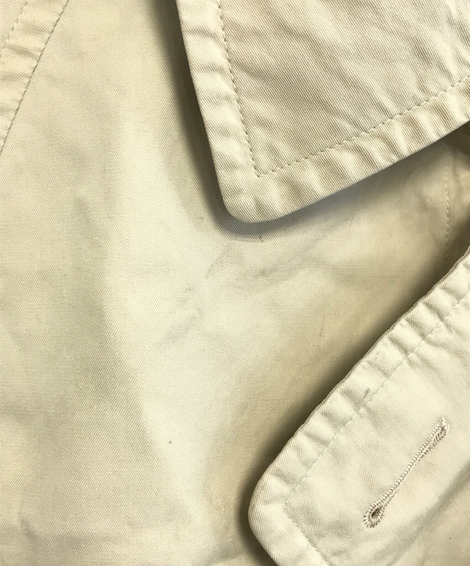 目立つシミや汚れ、におい等がある場合は商品画像や説明文にて極力表記させていただいておりますが、中古品という商品の特性上、全ての瑕疵や不備、洋服直し箇所を撮影・記載をすることは難しくなっております。また、ほとんどのアイテムは店頭と併売しておりますため、出品掲載時からコンディションが変動している場合もございます。あらかじめご了承くださいませ。