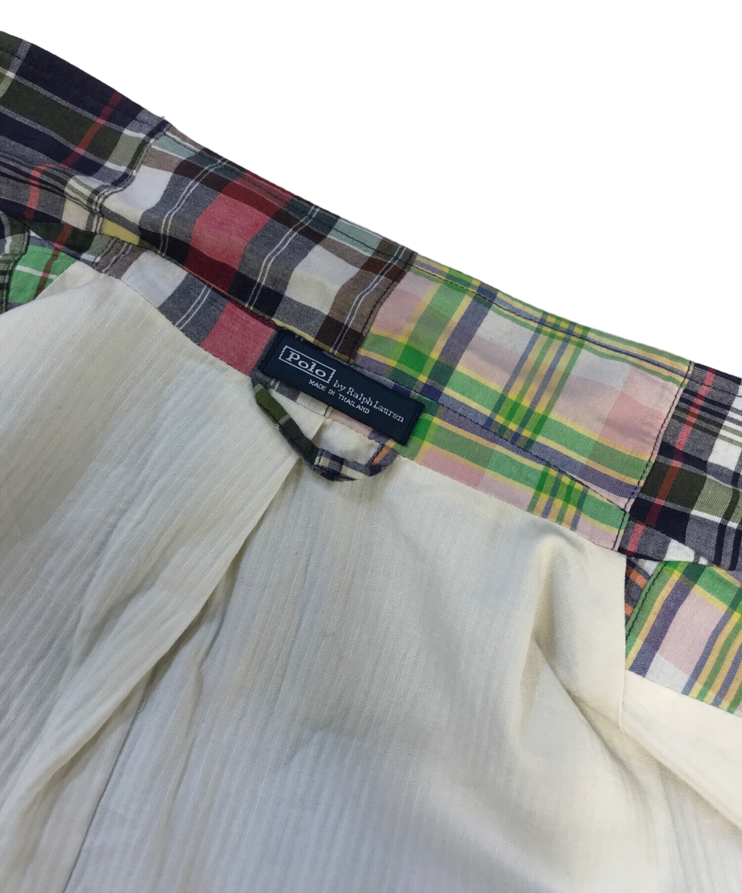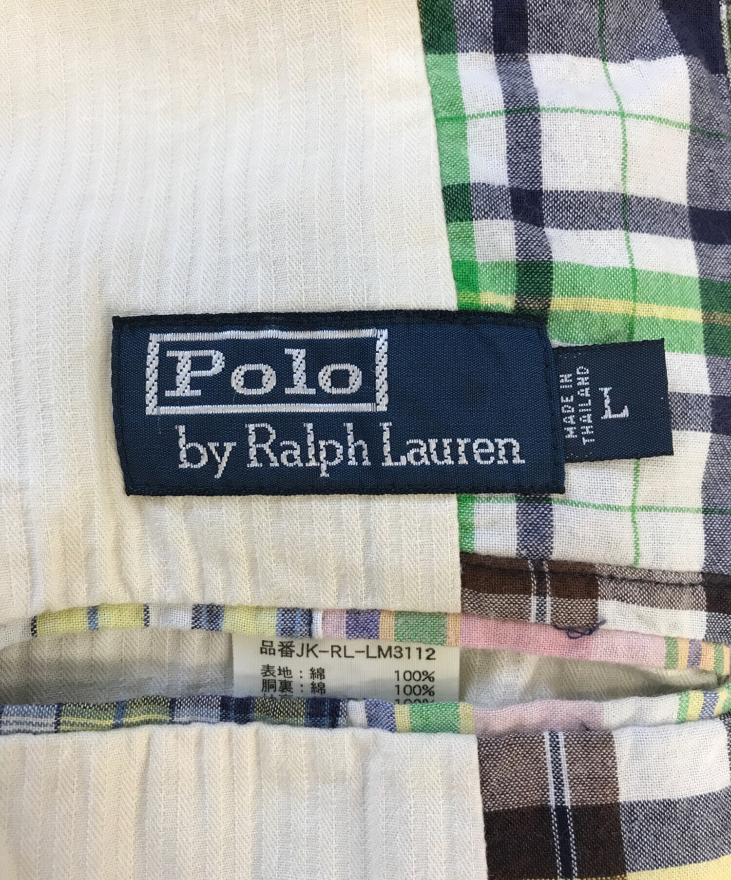 • POLO RALPH LAUREN(ポロ・ラルフローレン)POLO RALPH LAUREN (ポロ・ラルフローレン) チェックパッチワーク3Bジャケット マルチカラー サイズ:Lの古着・服飾アイテム 襟ヨゴレ