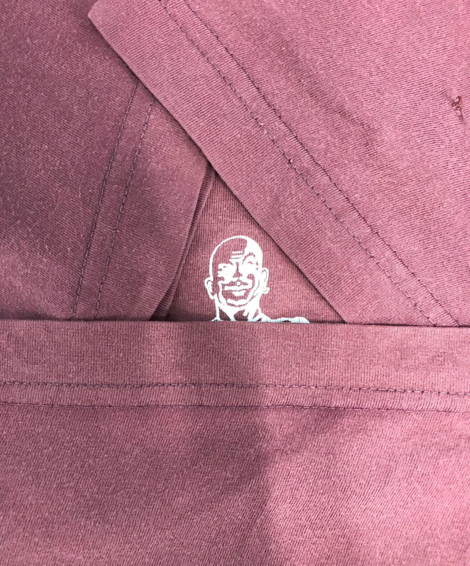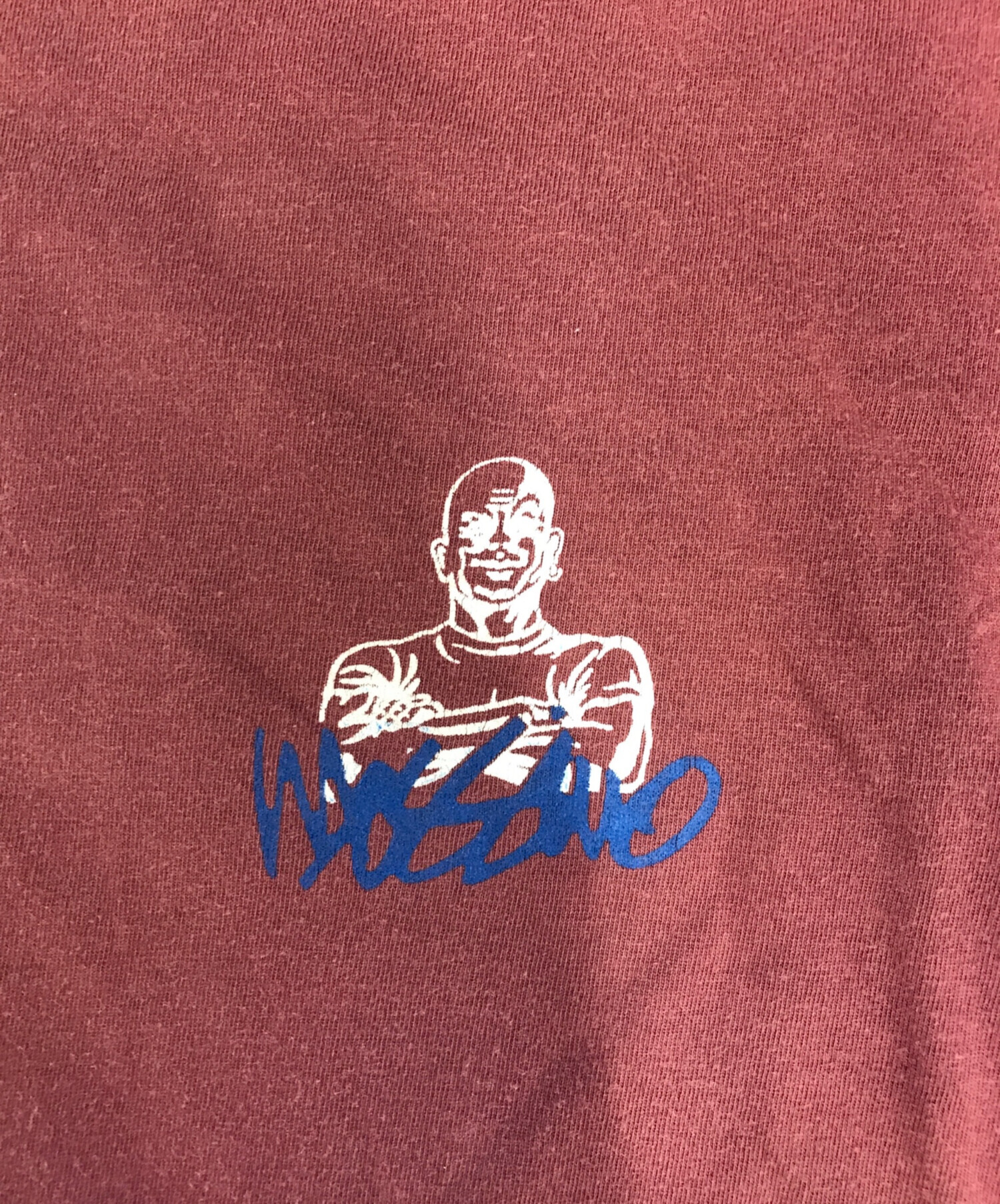 • MOSSIMO(モッシモ)MOSSIMO (モッシモ) プリントTシャツ レッド サイズ:Lの古着・服飾アイテム フロントリペア・ヨゴレ