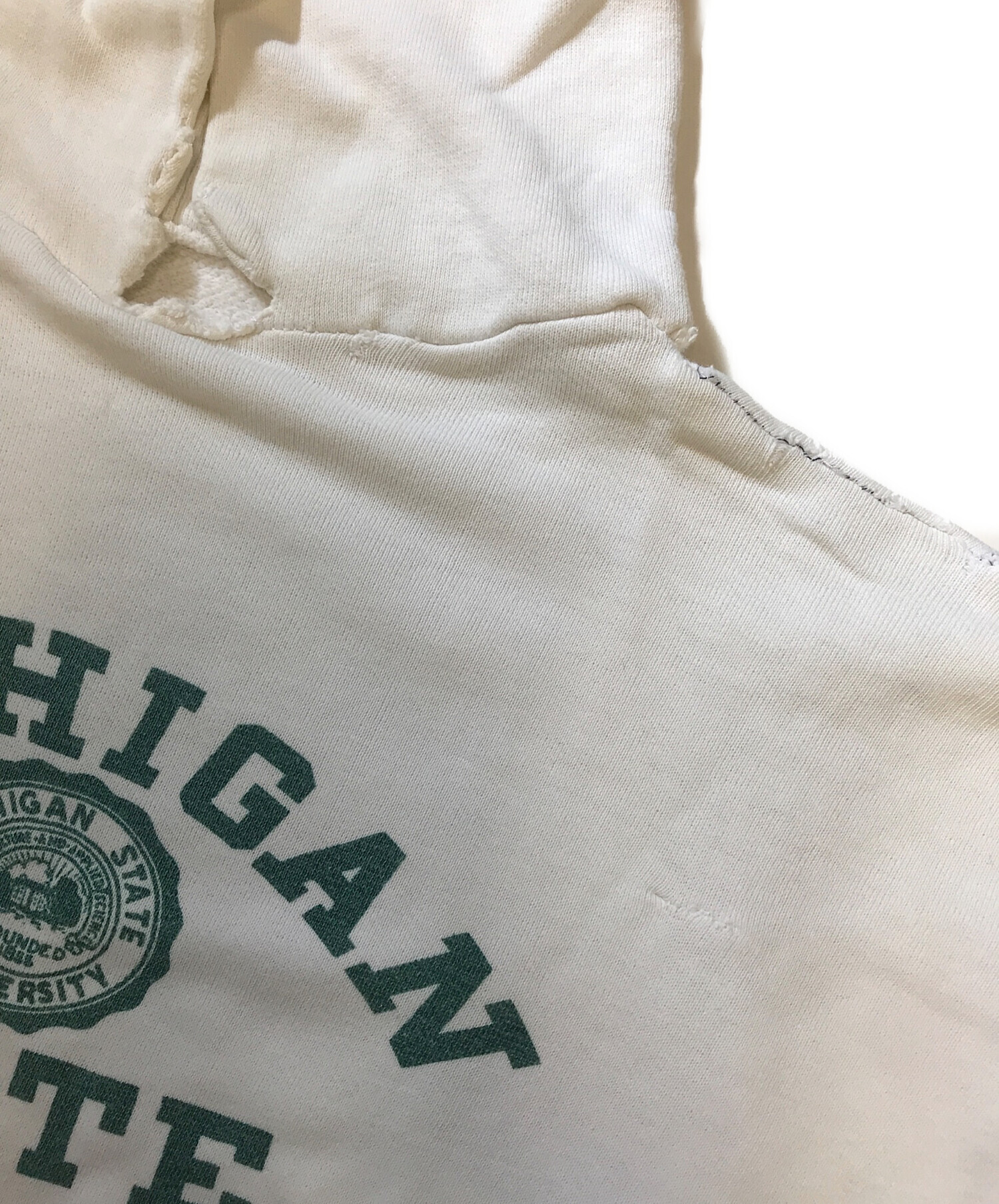 • VINTAGE(ヴィンテージ)VINTAGE (ヴィンテージ) 3段染み込みプリントパーカー ホワイト サイズ:表記なしの古着・服飾アイテム フロントダメージ・ヨゴレ・リペア