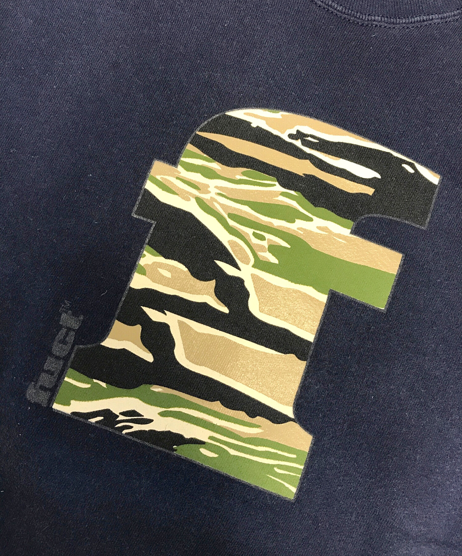 • FUCT(ファクト)FUCT (ファクト) タイガーカモプリントスウェット ネイビー サイズ:largeの古着・服飾アイテム フロント色褪せ