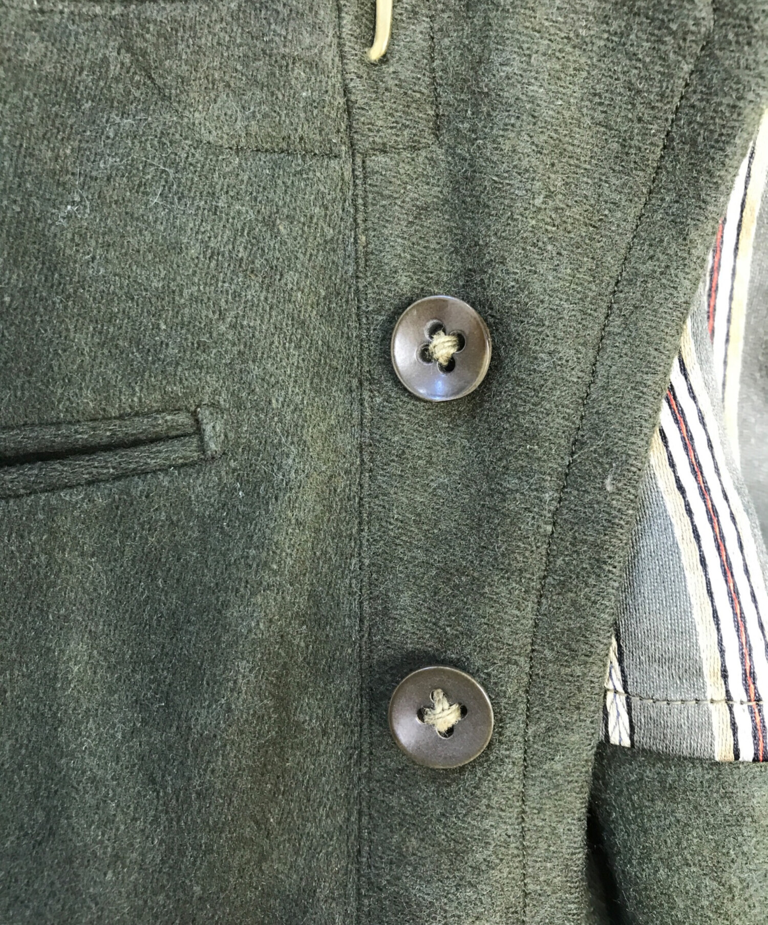 目立つシミや汚れ、におい等がある場合は商品画像や説明文にて極力表記させていただいておりますが、中古品という商品の特性上、全ての瑕疵や不備、洋服直し箇所を撮影・記載をすることは難しくなっております。また、ほとんどのアイテムは店頭と併売しておりますため、出品掲載時からコンディションが変動している場合もございます。あらかじめご了承くださいませ。