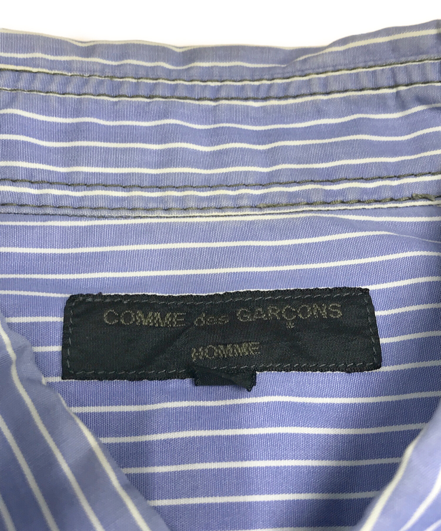 • COMME des GARCONS HOMME(コムデギャルソン オム)COMME des GARCONS HOMME (コムデギャルソン オム) 異素材切替ストライフシャツ ブルー×グリーン サイズ:XSの古着・服飾アイテム 襟ヨゴレ