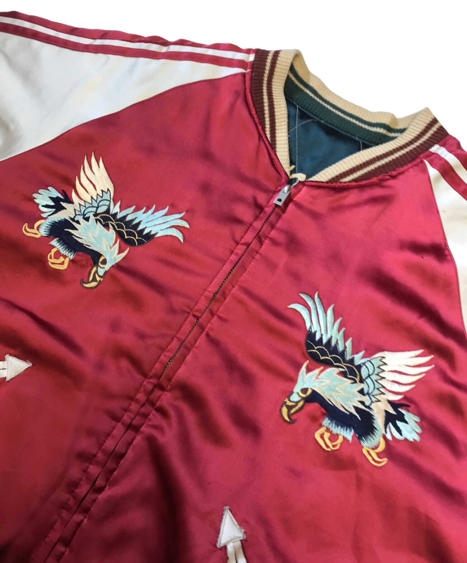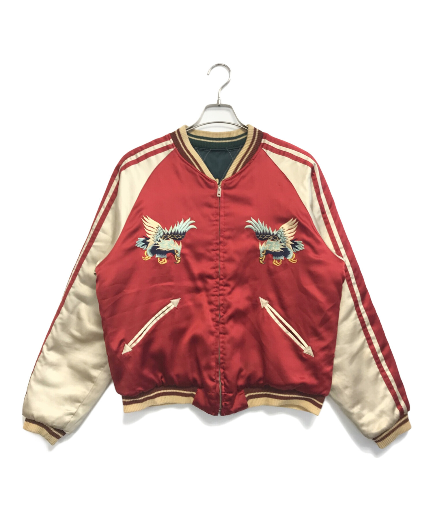 • TAILOR 東洋(テーラー東洋)TAILOR 東洋 (テーラー東洋) リバーシブルスカジャン レッド サイズ:Lの古着・服飾アイテム バックダメージ