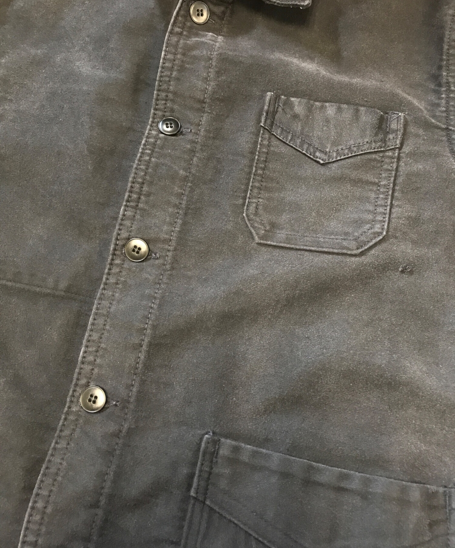 • USED(ユーズド)USED (ユーズド) ブラックモールスキンジャケット ブラック サイズ:不明の古着・服飾アイテム ダメージ