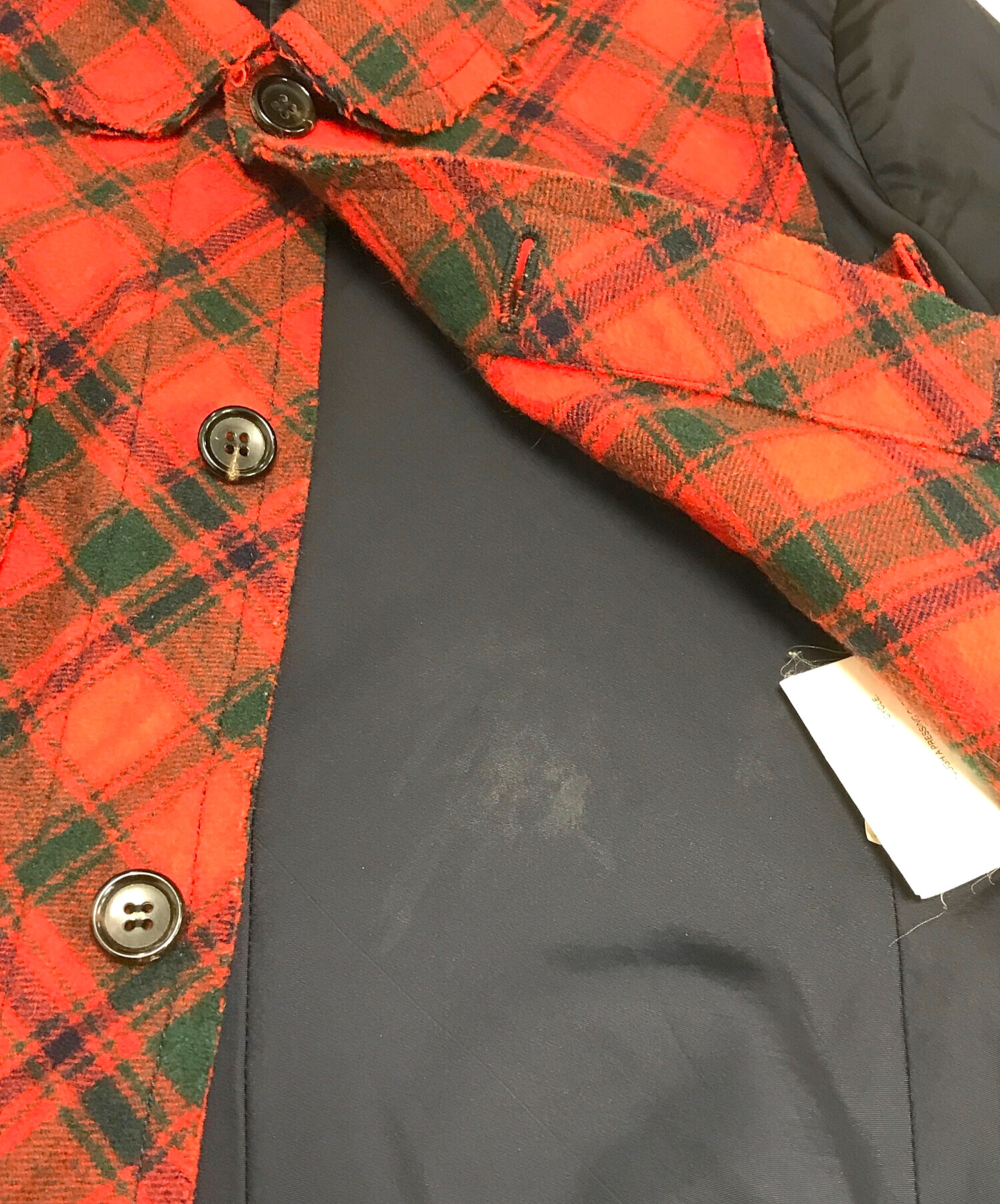 • tricot COMME des GARCONS(トリココムデギャルソン)tricot COMME des GARCONS (トリココムデギャルソン) 異素材切替丸襟ジャケット レッド×ネイビー サイズ:Mの古着・服飾アイテム 袖・袖裏ヨゴレ