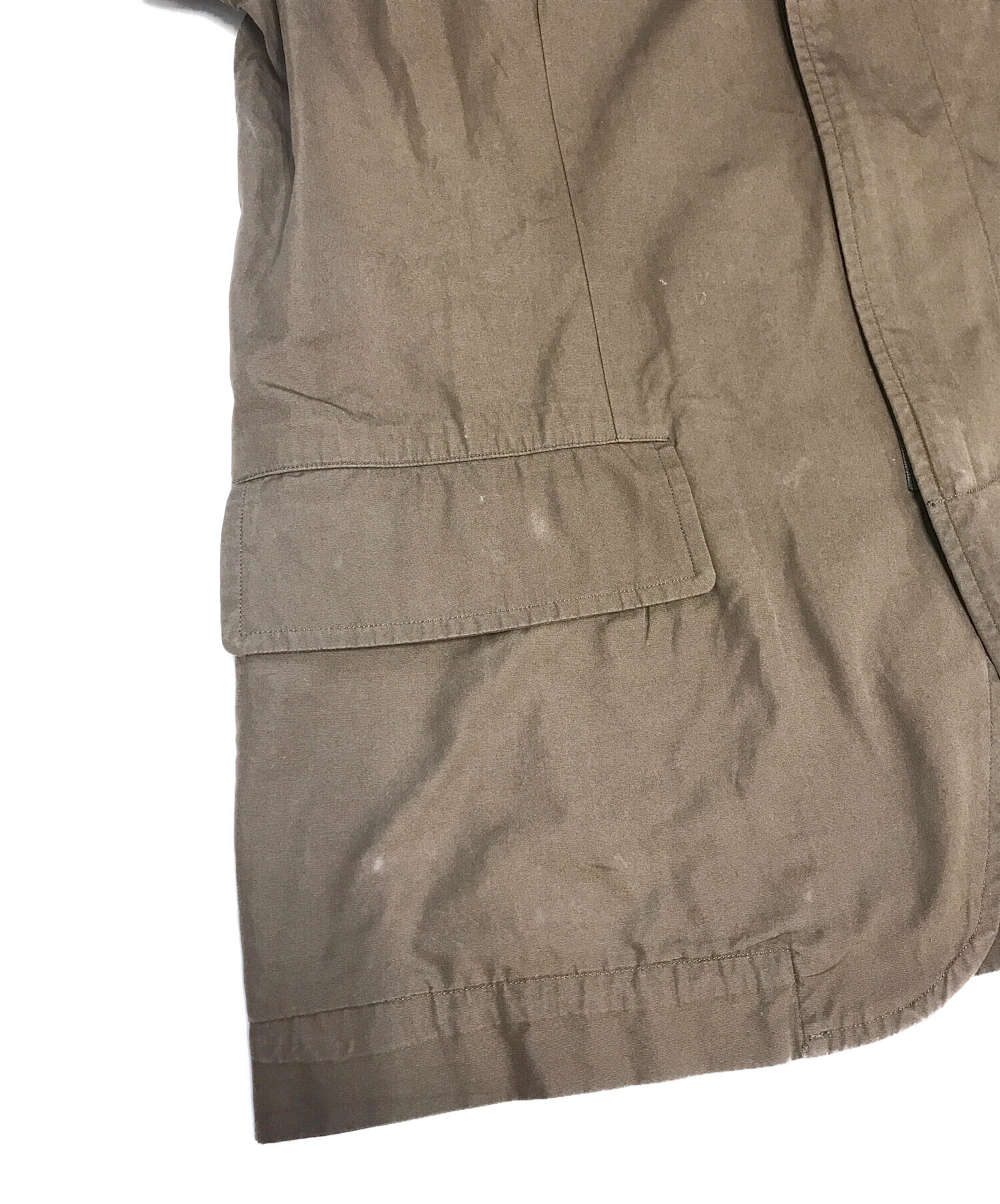 目立つシミや汚れ、におい等がある場合は商品画像や説明文にて極力表記させていただいておりますが、中古品という商品の特性上、全ての瑕疵や不備、洋服直し箇所を撮影・記載をすることは難しくなっております。また、ほとんどのアイテムは店頭と併売しておりますため、出品掲載時からコンディションが変動している場合もございます。あらかじめご了承くださいませ。
