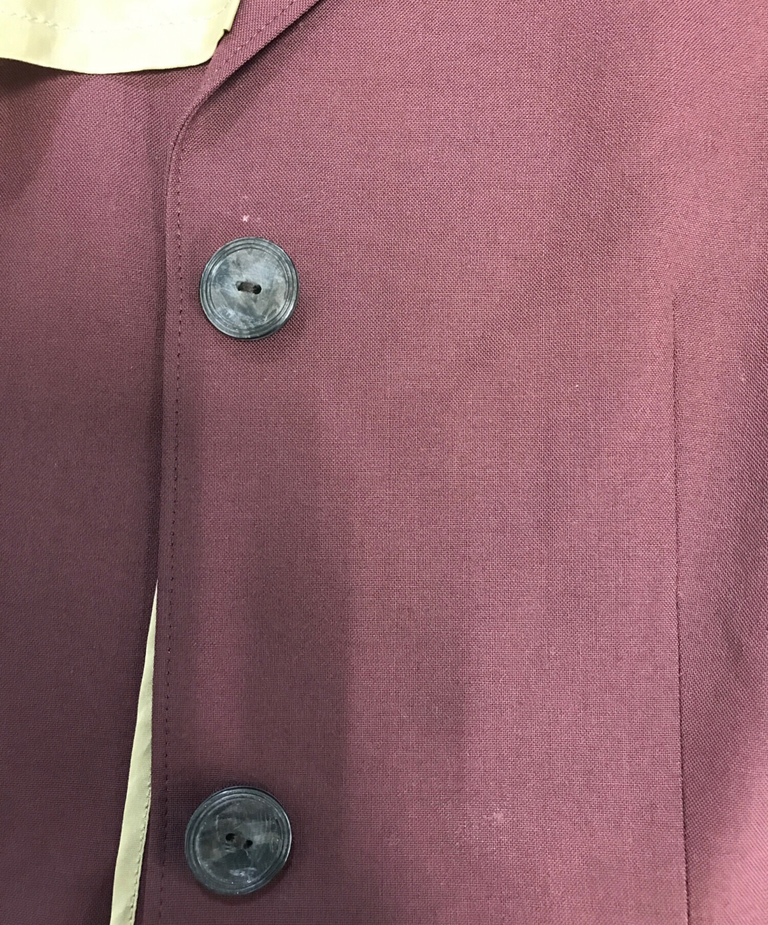 目立つシミや汚れ、におい等がある場合は商品画像や説明文にて極力表記させていただいておりますが、中古品という商品の特性上、全ての瑕疵や不備、洋服直し箇所を撮影・記載をすることは難しくなっております。また、ほとんどのアイテムは店頭と併売しておりますため、出品掲載時からコンディションが変動している場合もございます。あらかじめご了承くださいませ。