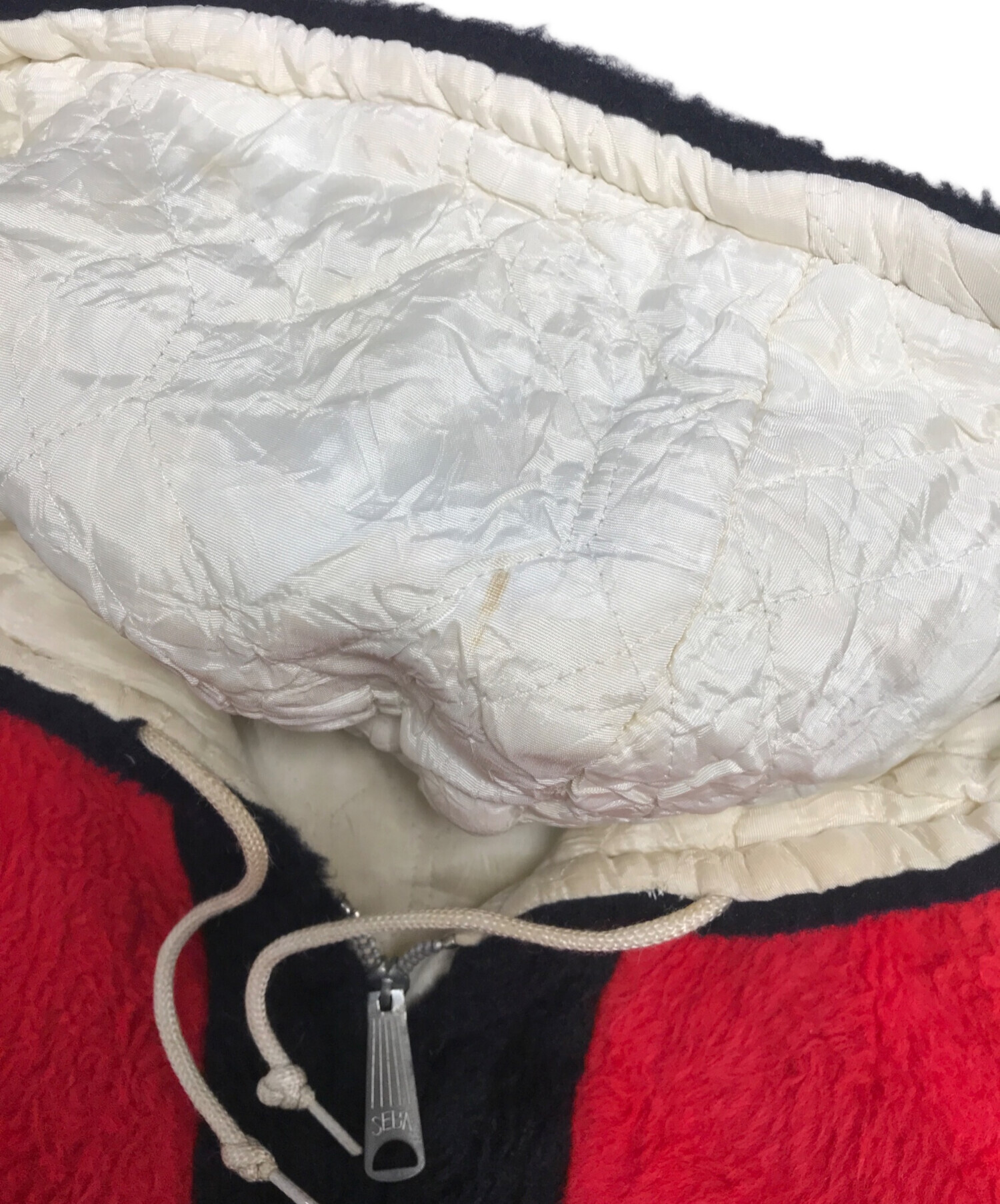 • VINTAGE(ヴィンテージ)VINTAGE (ヴィンテージ) ボアパーカー ホワイト×レッド×ブラック サイズ:表記なしの古着・服飾アイテム 裏地シミ・ヨゴレ