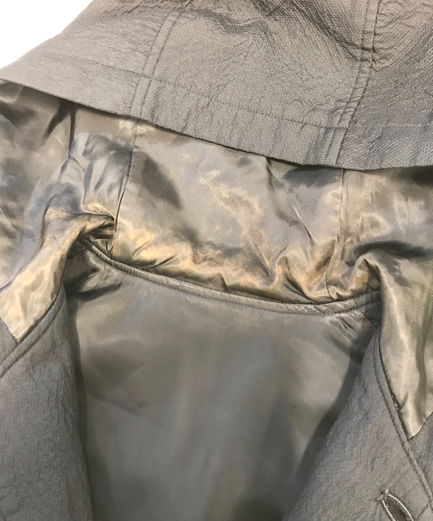 目立つシミや汚れ、におい等がある場合は商品画像や説明文にて極力表記させていただいておりますが、中古品という商品の特性上、全ての瑕疵や不備、洋服直し箇所を撮影・記載をすることは難しくなっております。また、ほとんどのアイテムは店頭と併売しておりますため、出品掲載時からコンディションが変動している場合もございます。あらかじめご了承くださいませ。