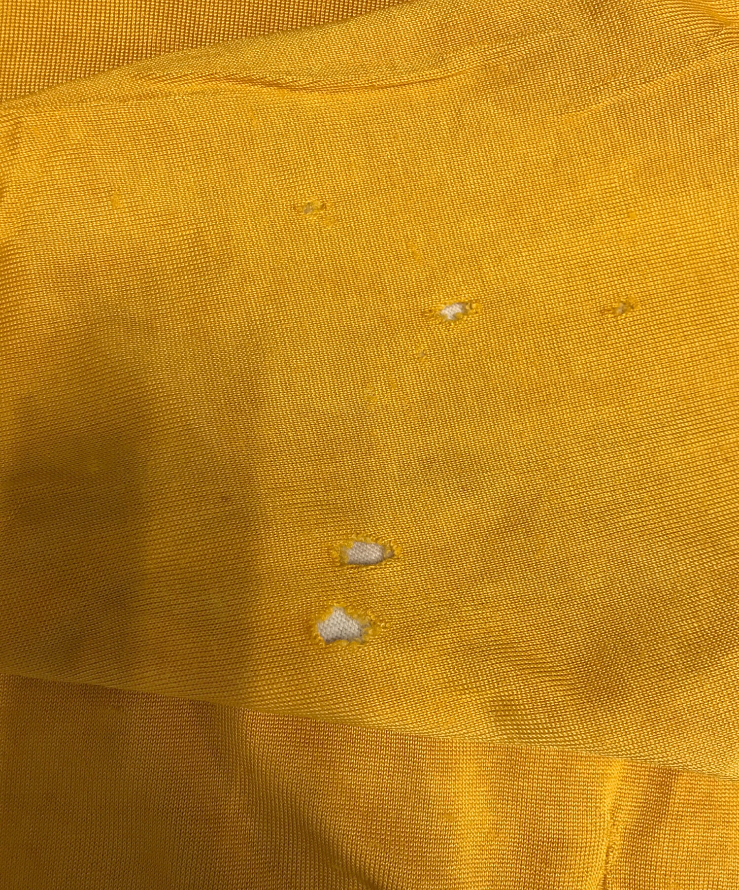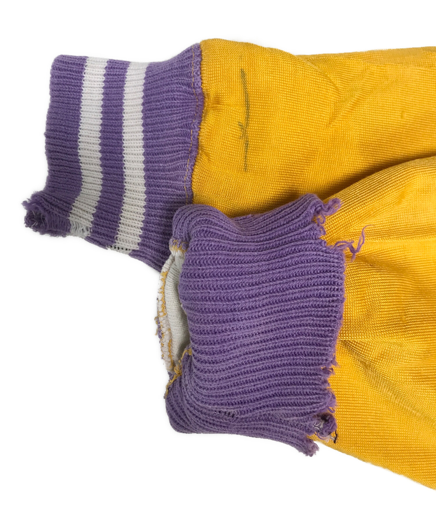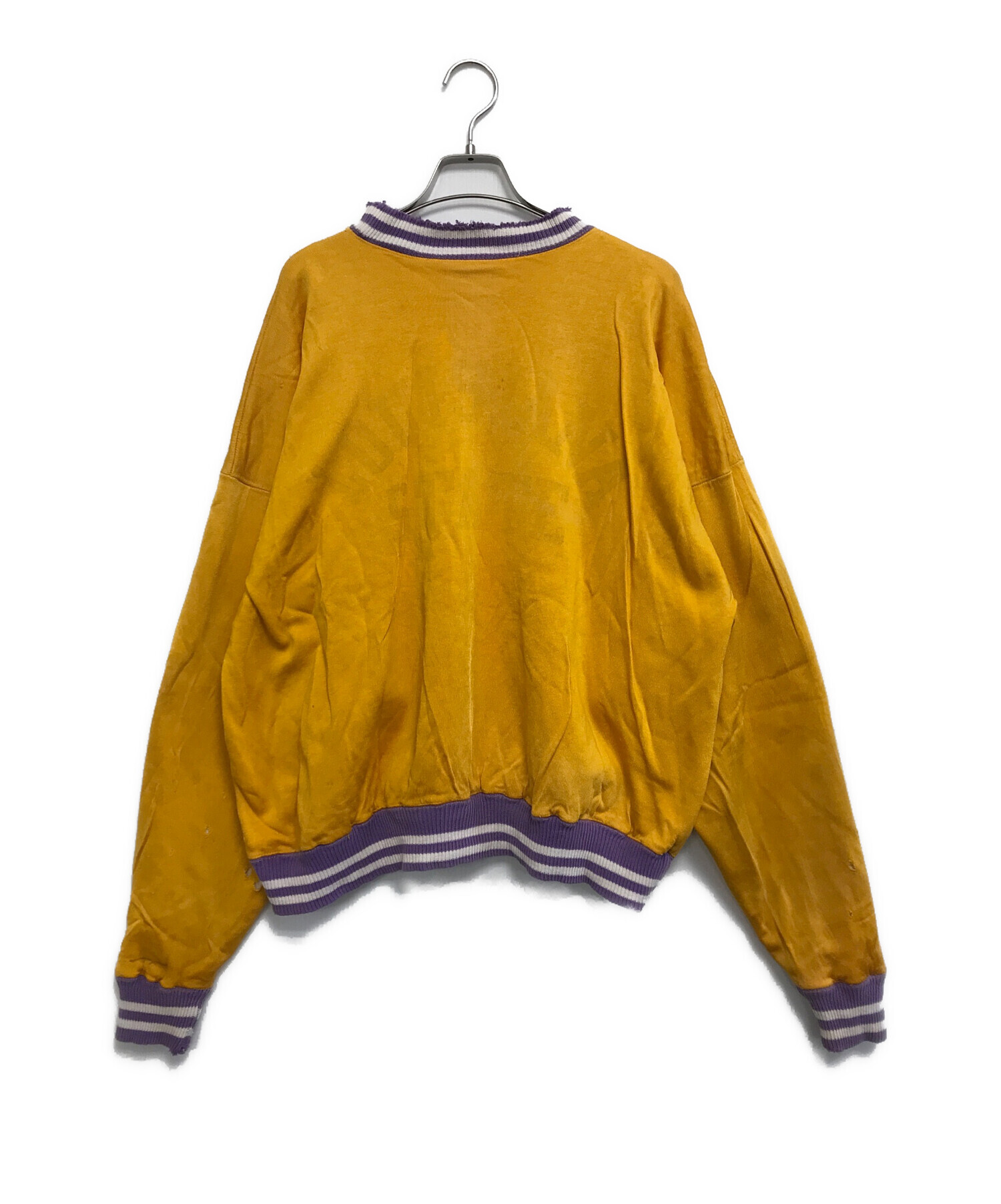 • Champion(チャンピオン)Champion (チャンピオン) ダブルフェイス リブラインスウェット イエロー×パープル サイズ:XLARGEの古着・服飾アイテム ダメージ