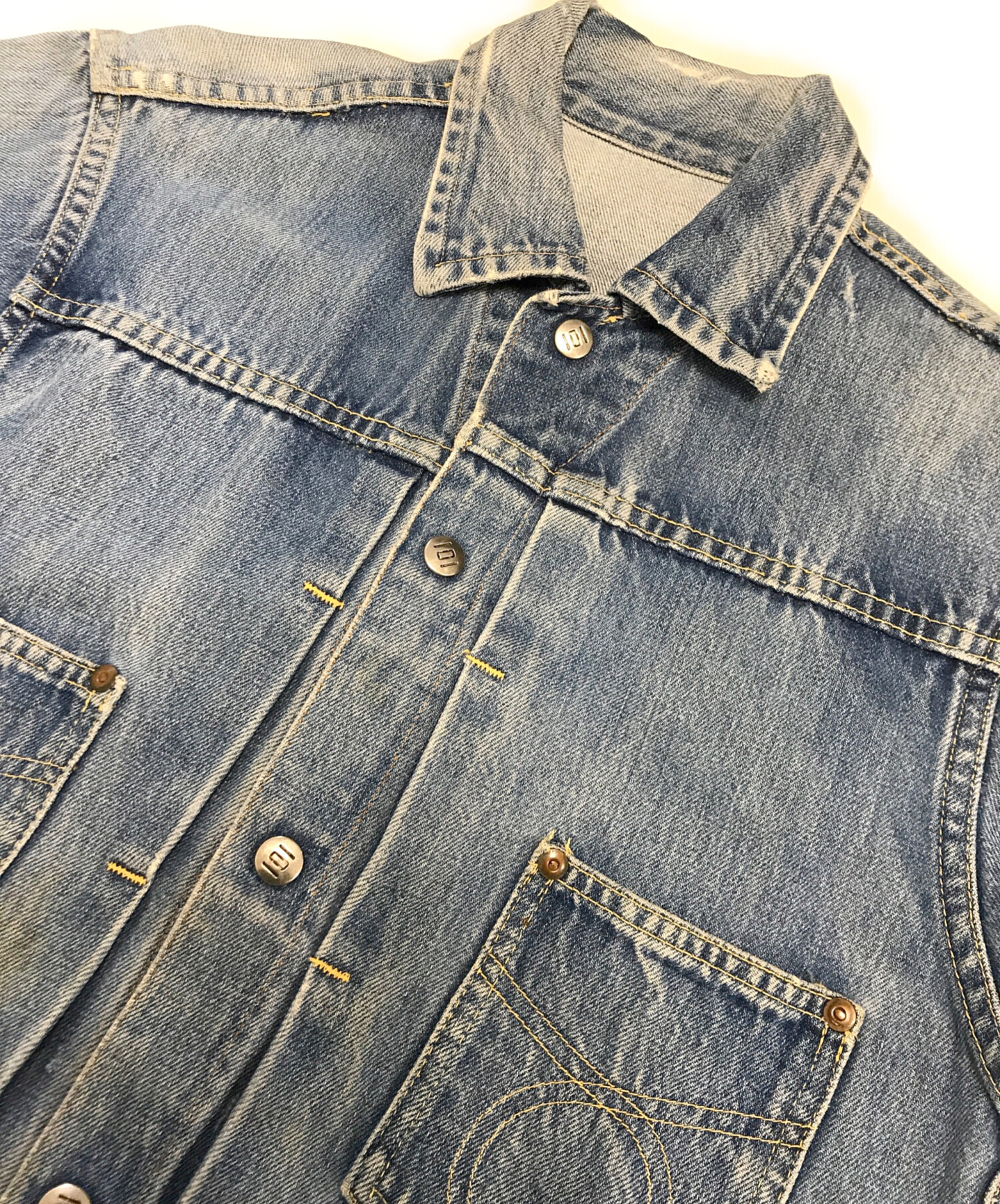 • MONTGOMERY WARD(モンゴメリーワード)MONTGOMERY WARD (モンゴメリーワード) スナップデニムジャケット インディゴ サイズ:表記なしの古着・服飾アイテム フロントシミ・ヨゴレ