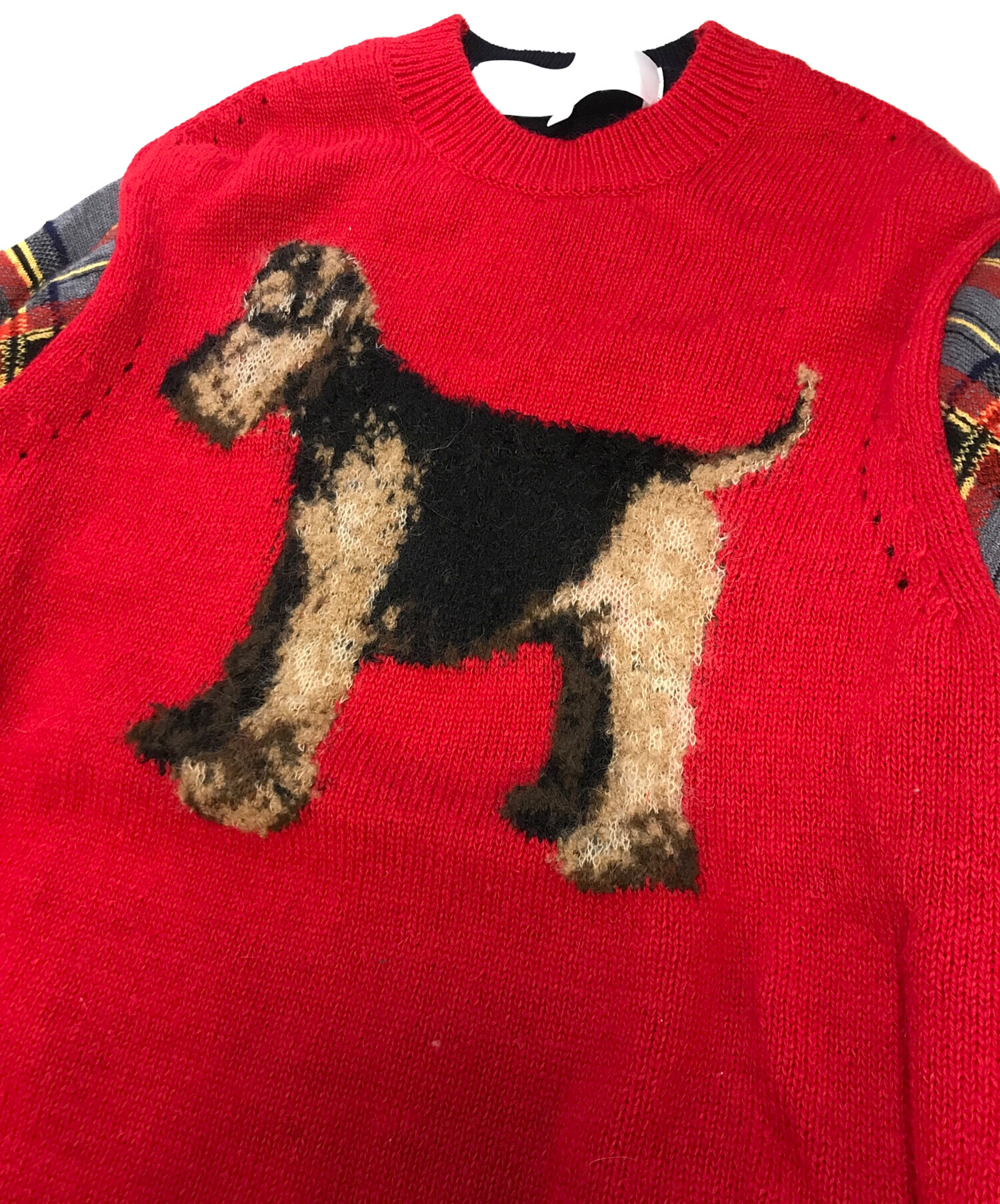 犬柄×チェック柄ニットセーター
