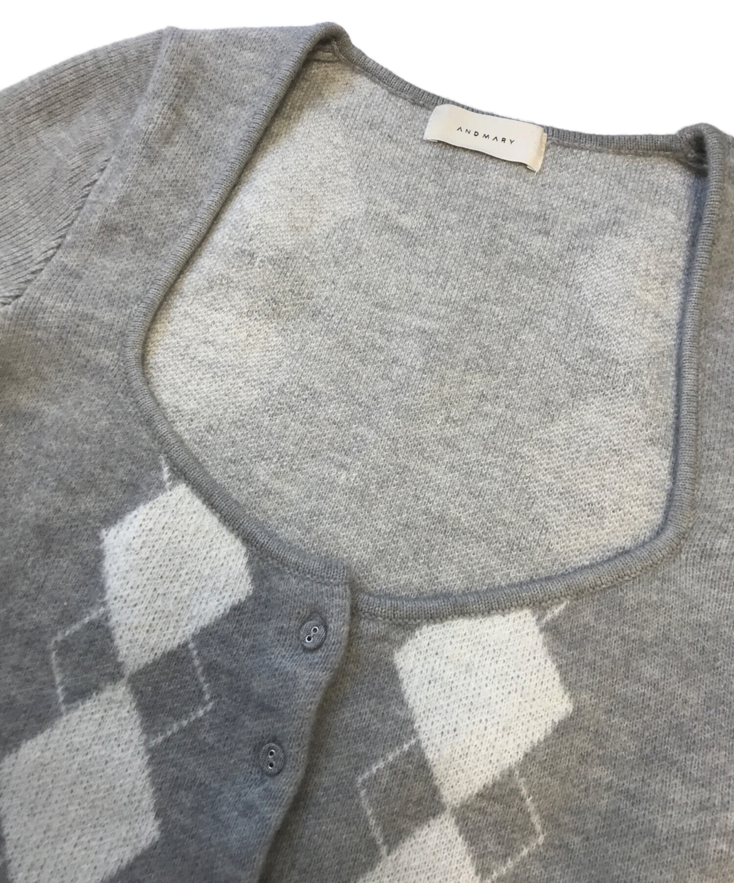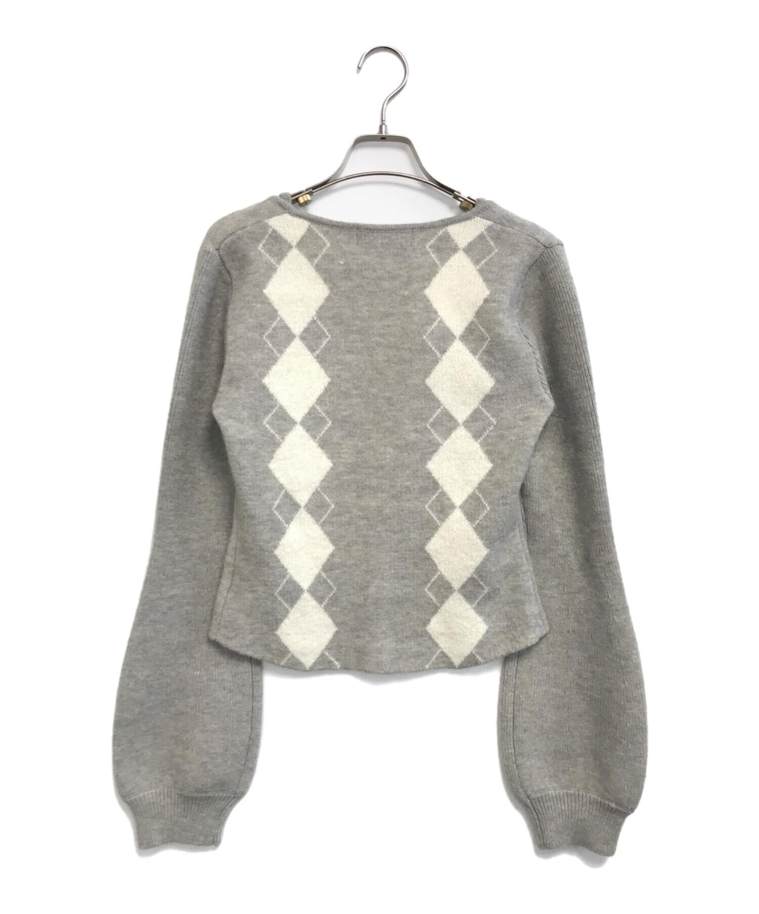 • ANDMARY(アンドマリー)ANDMARY (アンドマリー) Argyle ribbon knit set up グレー サイズ:Freeの古着・服飾アイテム トップスバックホツレ