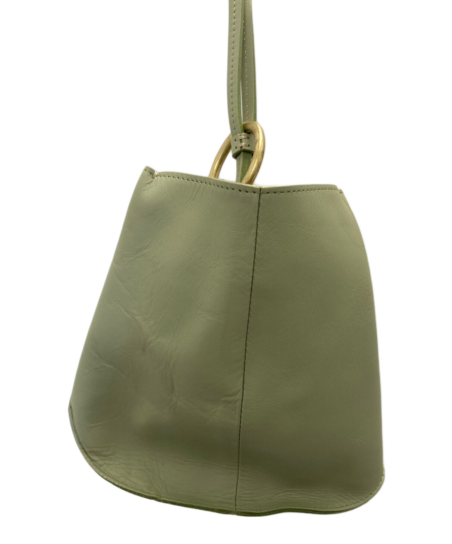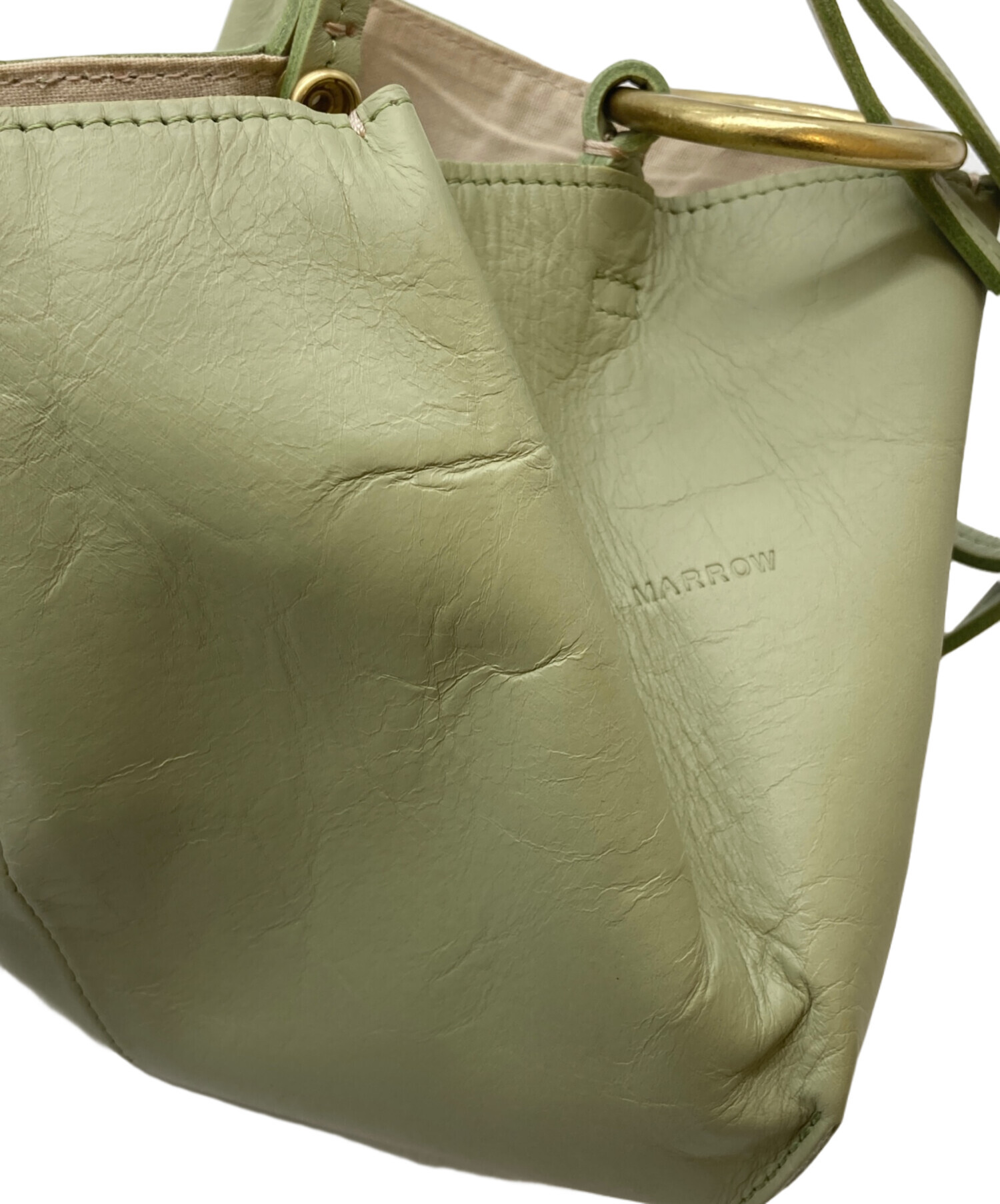 • MARROW(マロウ)MARROW (マロウ) RING HANDLE BAG グリーンの古着・服飾アイテム 型崩れ、シワ有