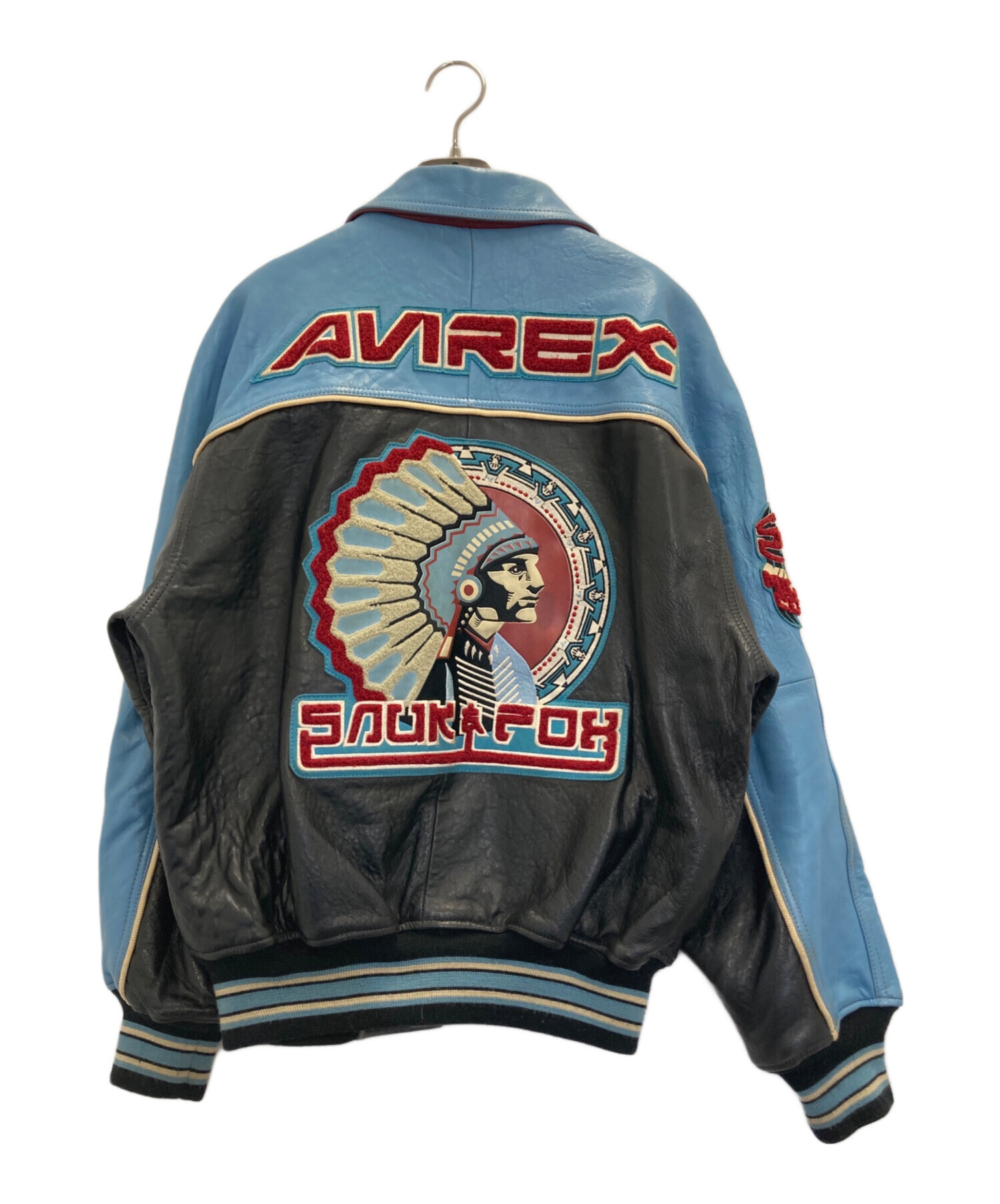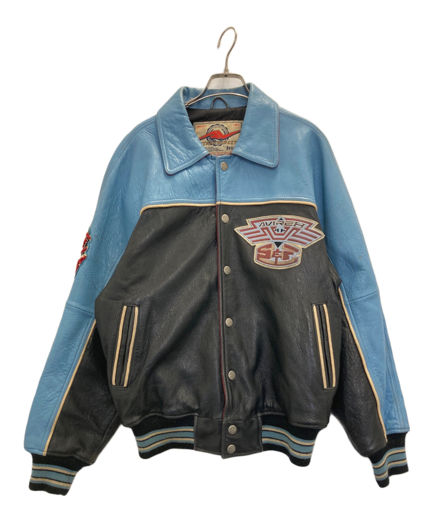 • AVIREX VARSITY(アヴィレックスバーシティ)AVIREX VARSITY (アヴィレックスバーシティ) LEATHER VARSITY JACKET ブラック×ブルー サイズ:Sの古着・服飾アイテム